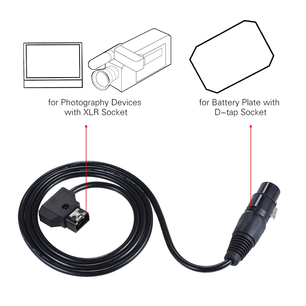 D-Tap для V-mount батареи, XLR для монитора или видеокамеры, используется для питания фотографических устройств от внешнего аккумулятора.