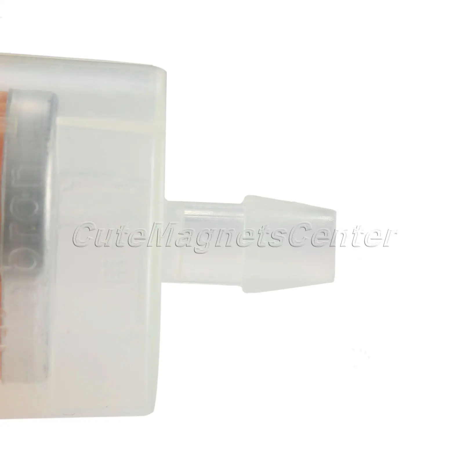 Прозрачный пластиковый корпус с оранжевым внутренним фильтром.