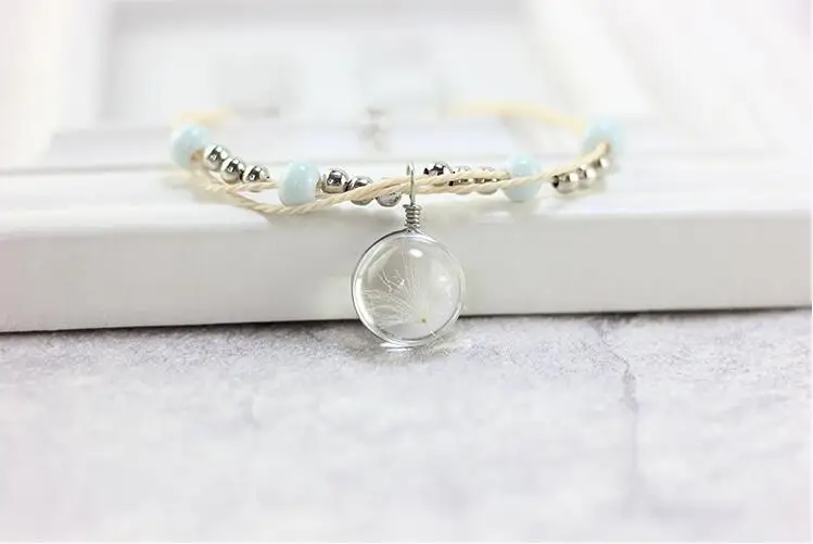 Сушеный цветок браслет с вечной жизнью, драгоценный камень браслет, женский браслет ручной работы из цветущего персика MS3146