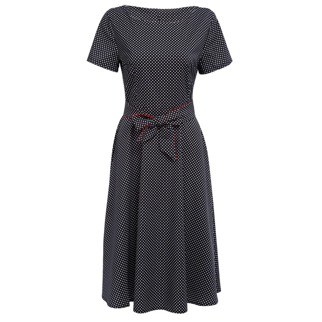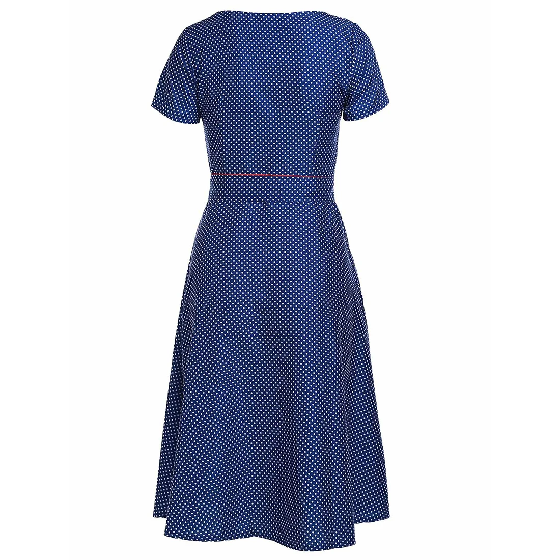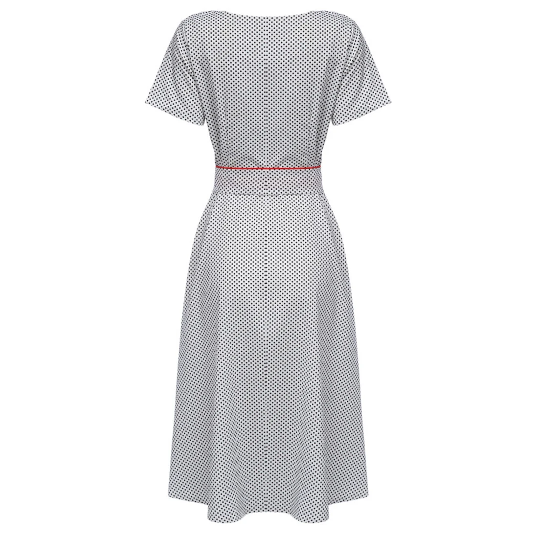 YJSFG домашнее женское платье в горошек, тонкое офисное платье для работы, осень 2017, туника с коротким рукавом, вечернее платье с поясом, черный, белый, синий