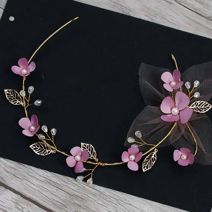 Милая розовая Свадебная кружевная тиара с бисером ручной работы, Корона tocados para novias, керамический цветочный головной убор для волосUS $17,77 /Шт.