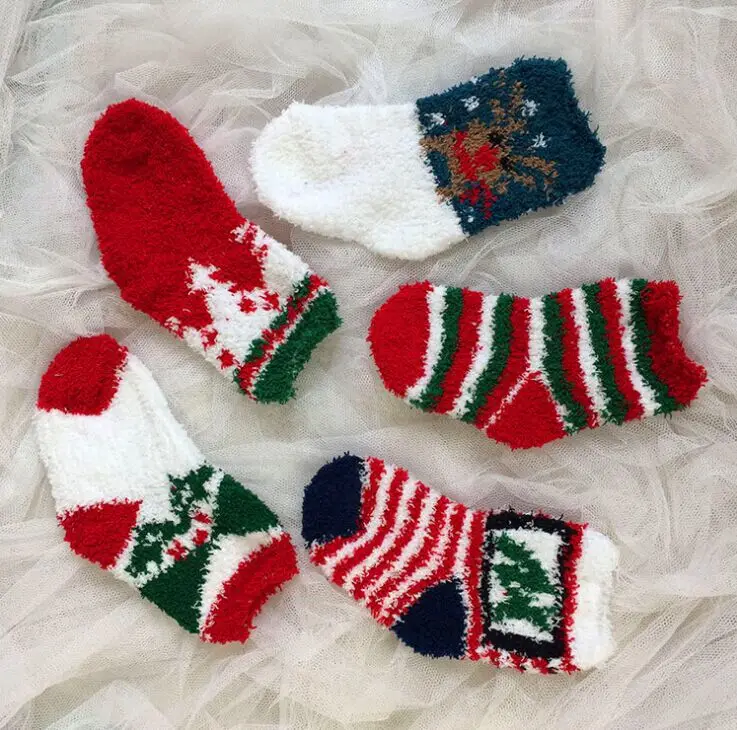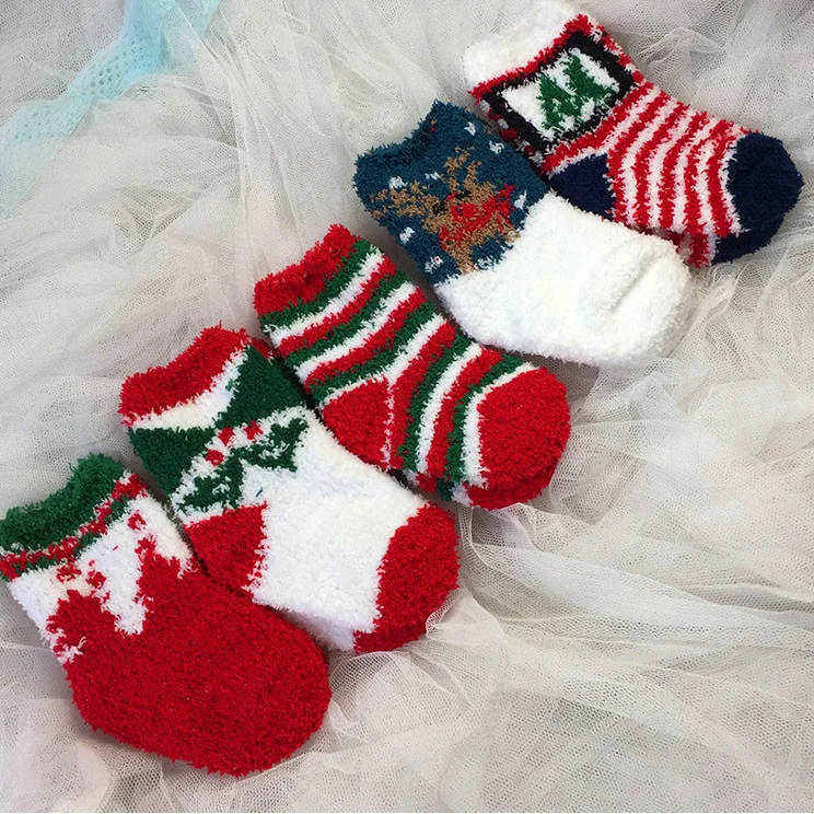 Материал: хлопокРазмер 1: подходит для От 1 до 3 лет;Размер 2: подходит для От 4 до 6 лет;В комплект входит:1 пара детских носков (цвета будут выбраны случайным образом)Рождественские чулки детские носки для мальчиков и девочек Детские теплые пушистые носки до щиколотки для детей 1-6 лет