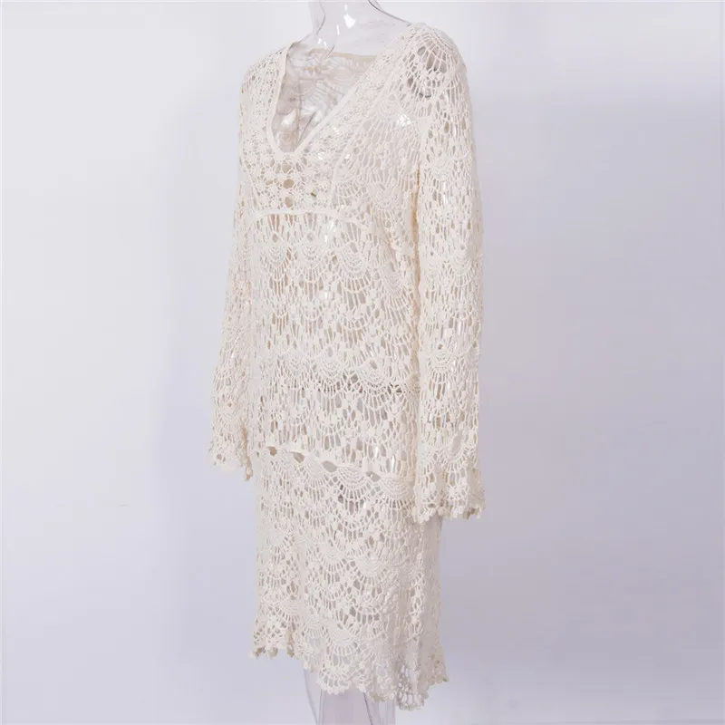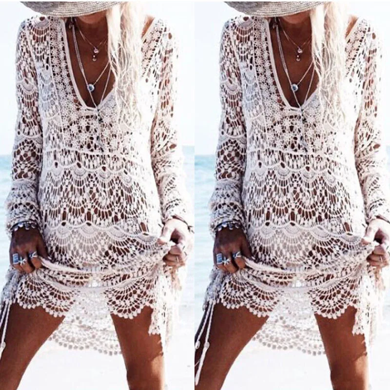 Сексуальное бикини-саронг, Пляжное кружевное трикотажное платье с вышивкой, Пляжная накидка, белый халат, женские накидки