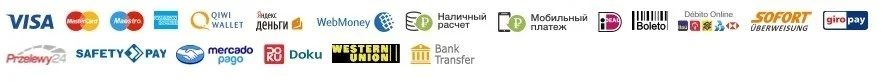 Мы поддерживаем следующие способы оплаты. Все оплаты выполненные на AliExpress обрабатываются сервисом Alipay.