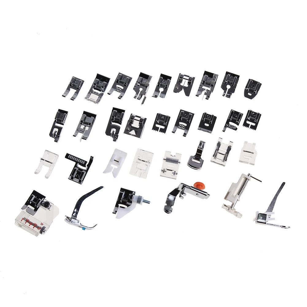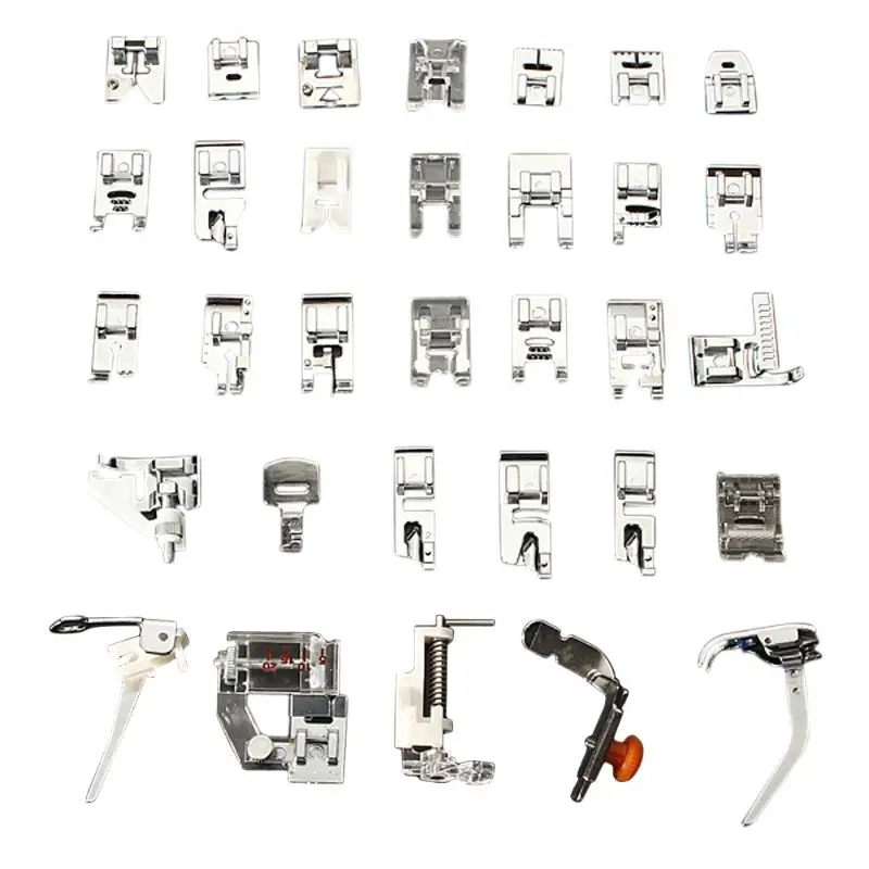 1. Стежка направляющая нога; 2. Пинтук ноги 5 канавок; 3. Атласная стежка ноги; 4. Лапка для шва "Зиг-заг", Ягуар; 5. Двойной шов ноги; 6. Невидимая молния ноги; 7. Роликовые Ноги