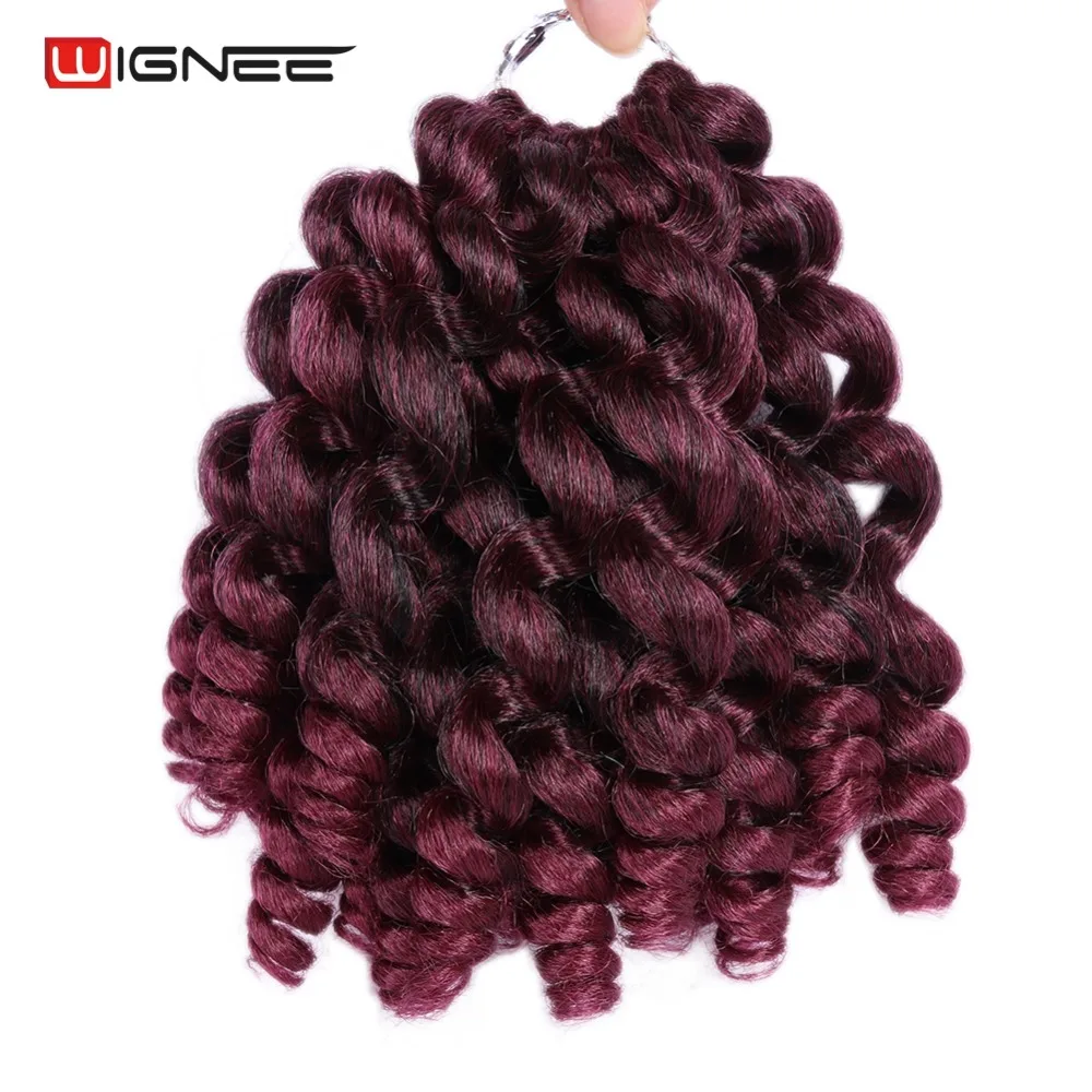 Wignee, 8 дюймов, 20 прядей, синтетические, кудрявые, закрученные, косички, для наращивания волос, для черных женщин, жезл, завиток крючком, фиолетовые/красные/серые/коричневые волосы
