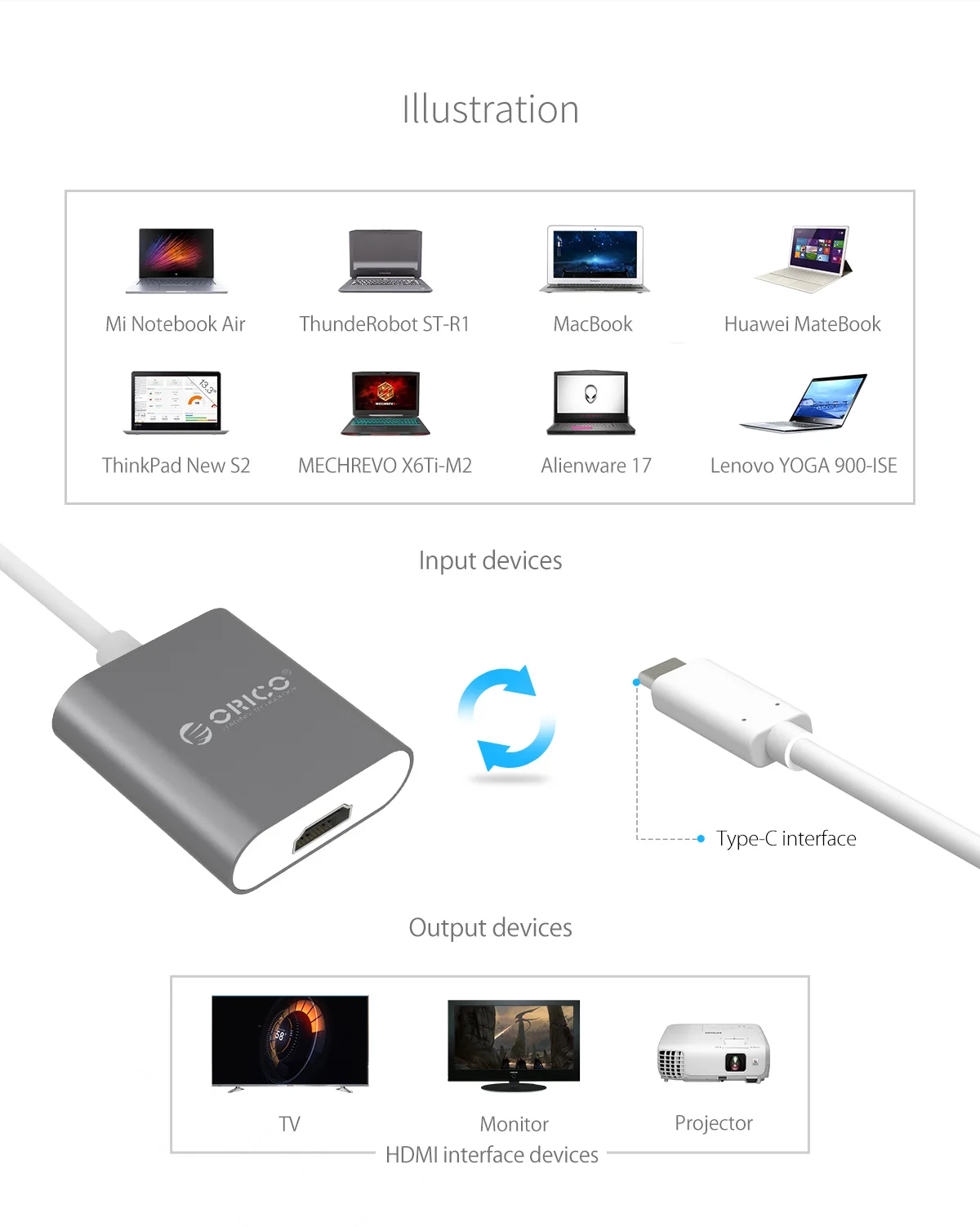 Настоящий 4K Type-C к HDMI конвертер высокой четкости, функция: алюминиевая текстура, 4K Высокое разрешение, зеркальный режим, режим Span