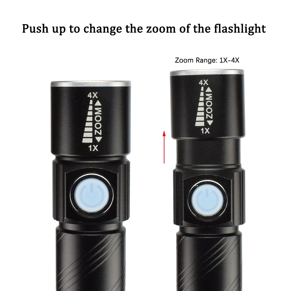 1 шт. 1X-4X Zoom USB Перезаряжаемый Фонарик