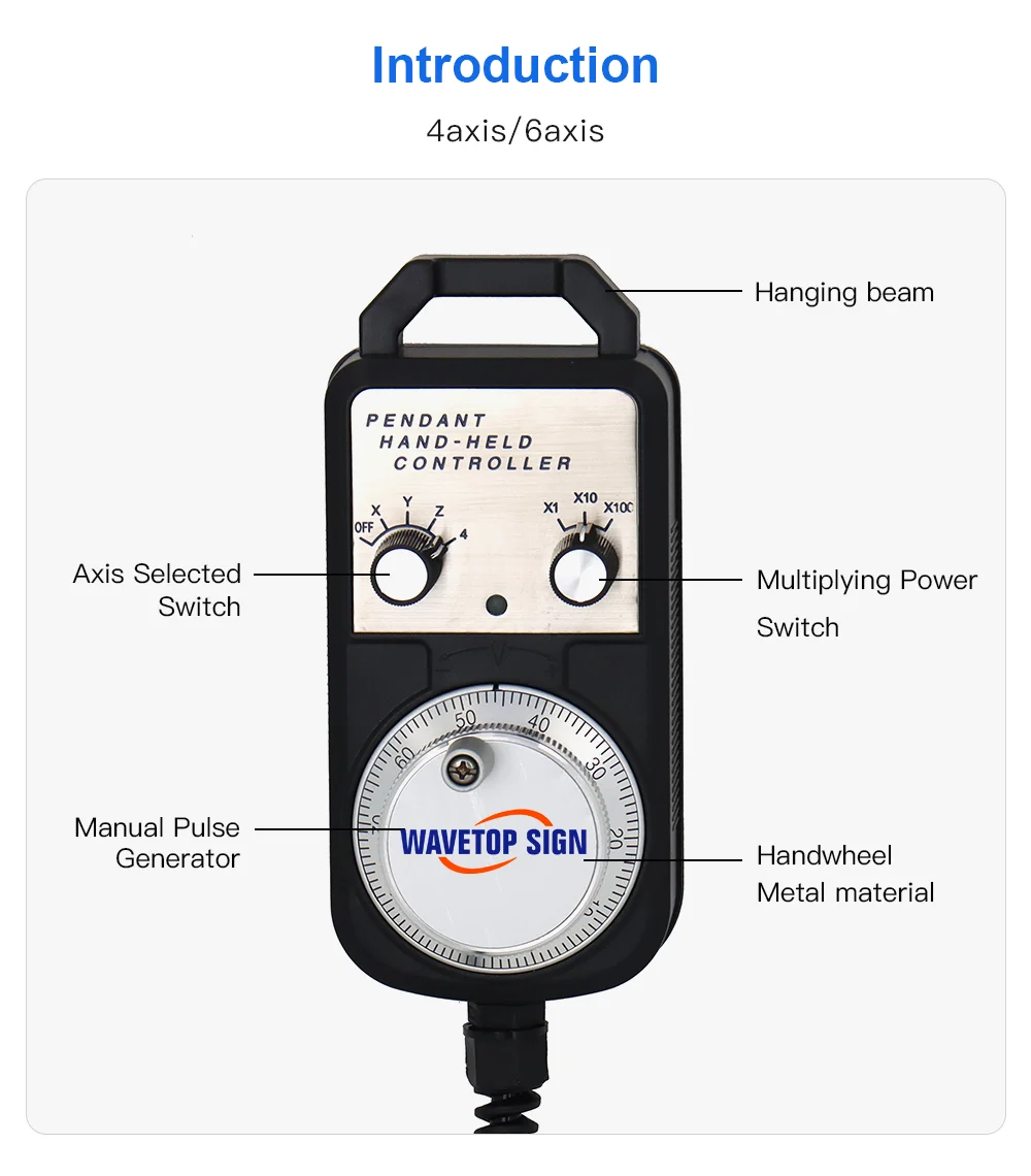 Ручной контроллер MPG с ЧПУ 4 осями с подвеской x1, x10, x100, выбирается, вы предлагаете один полный блок Подвеса MPG с аварийной остановкой для 4-осевого станка с ЧПУ, он оснащен нашим популярным механическим блоком MPG с 4 осями и селектором масштаба, Светодиодный индикатор также отправляет отзывы от станка с ЧПУ пользователю о состоянии устройства.