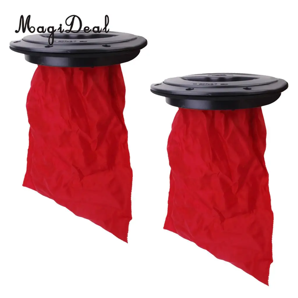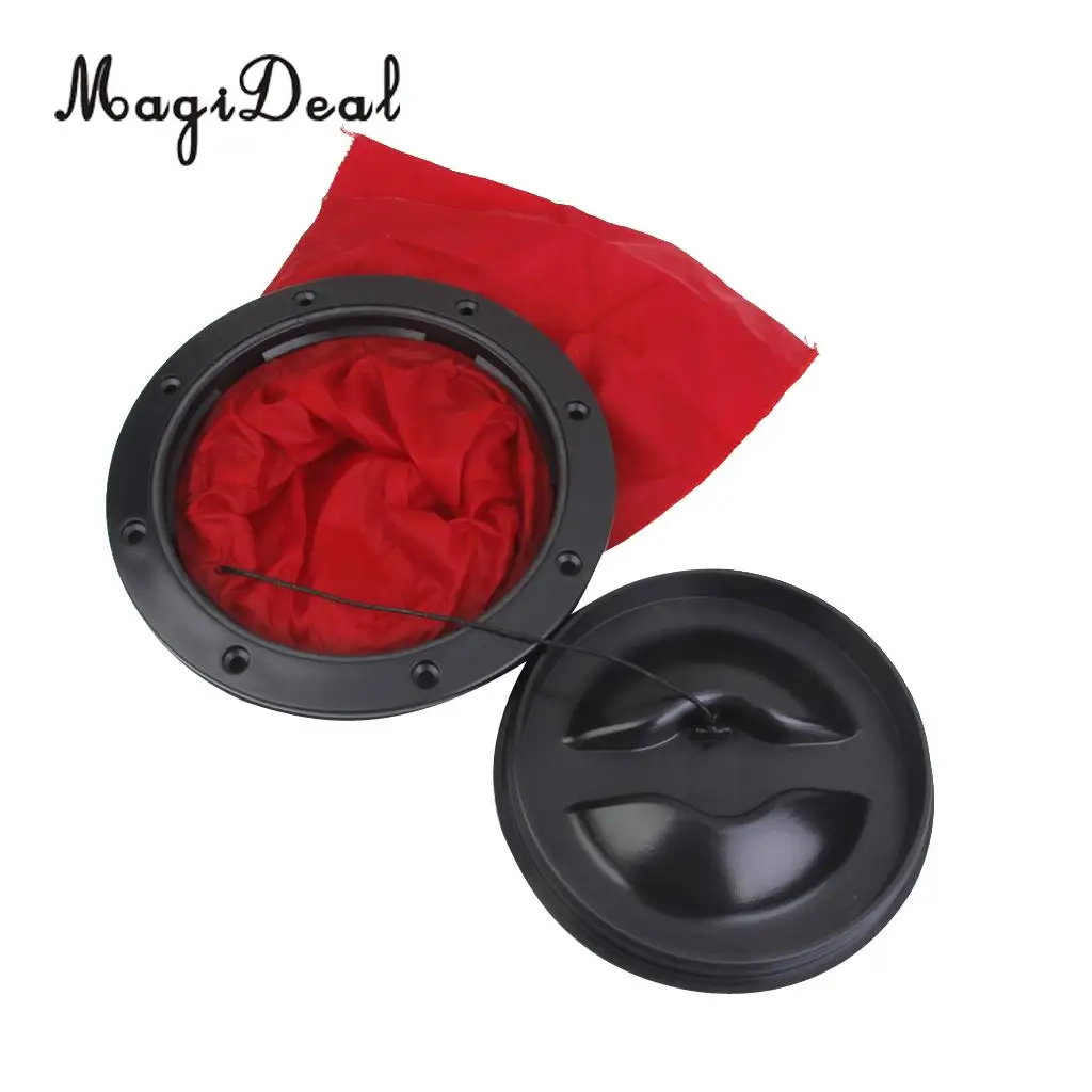 Черная крышка люка с красной водонепроницаемой съемной сумкой для хранения.