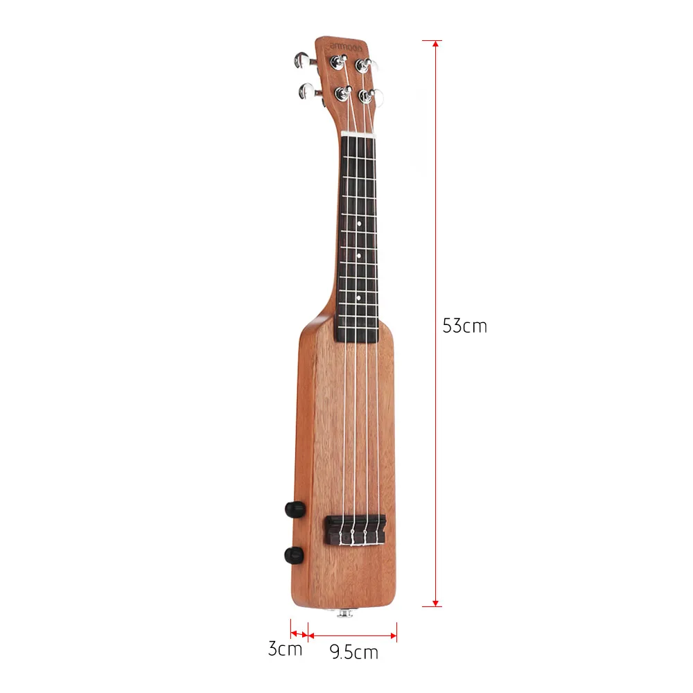 Ammoon 21 "креативная электрическая укулеле в форме бутылки имеет корпус из цельного дерева, гриф из розового дерева и мост, а также колышки для настройки из хромового сплава. Разработан с 6,35 мм выход для подключения усилителя, 3,5 мм выход для подключения наушников и 3,5 мм вход для подключения MP3 или других сопровождать устройств. Позвольте вам иметь более мощную, более разнообразную и более свободную укулеле играть!