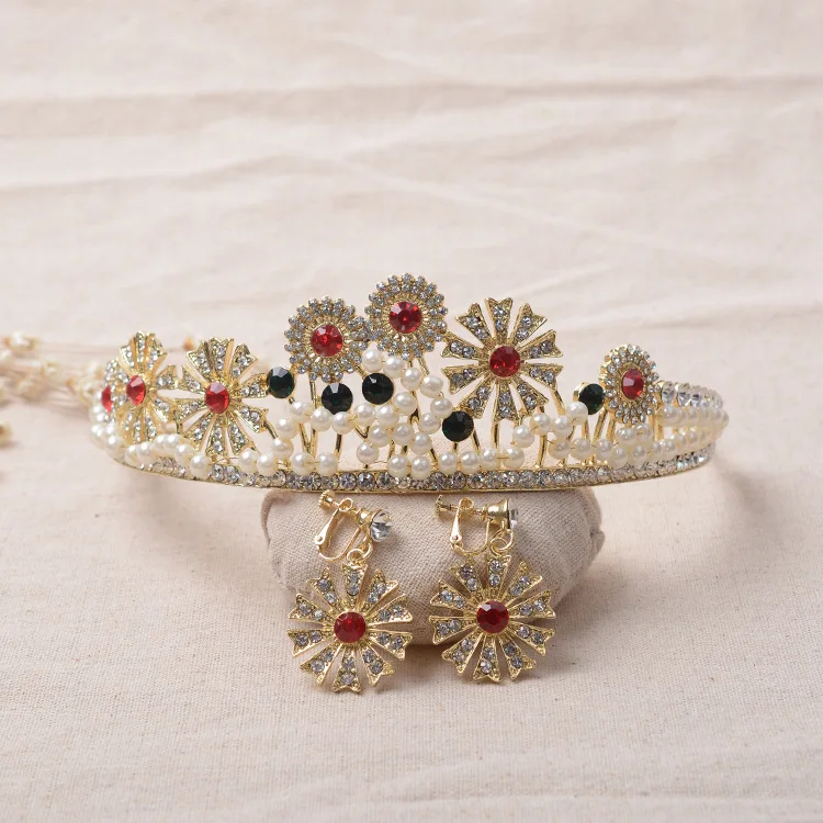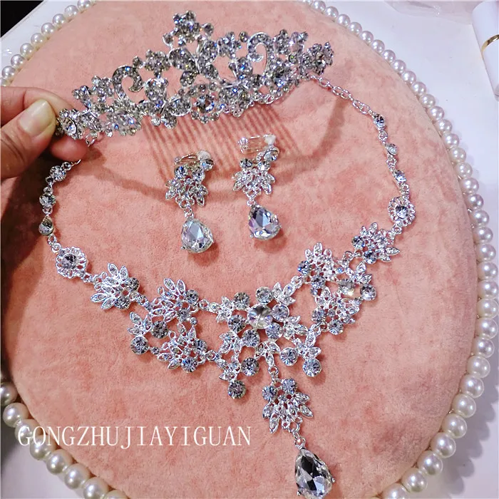 Корейские стразы имитация жемчуга свадебное ожерелье серьги Корона 3 шт Свадебные колье, комплекты Свадебные аксессуары