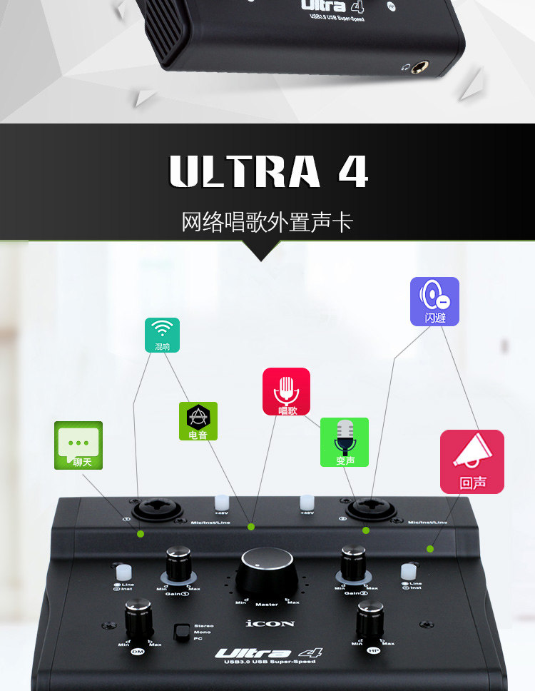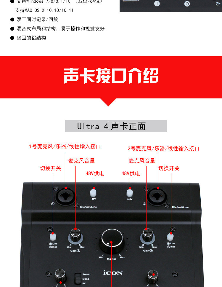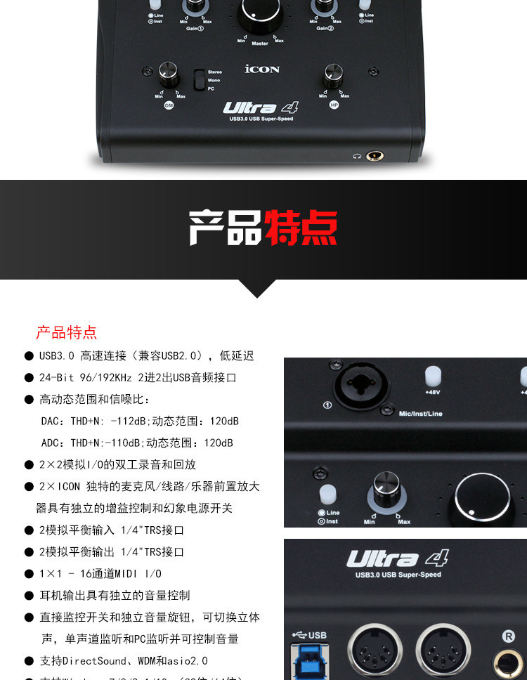 Ultra HD 4Захватите лучшую производительность с помощью аудиоинтерфейса Icon Pro Audio Ultra 4 USB 3,0. Мы разработали наши последние 24 бита 96/192 кГц 2 В/2-выход аудио-интерфейс, чтобы обеспечить превосходную sonic качество, низкий уровень шума, и Сверхбыстрые скорости обработки в прочном, компактный, универсальный настольный блок. Записывайте сразу два инструмента через два высококачественных усилителя, каждый из которых оснащен индивидуальным усилением, фантомным питанием и светодиодный индикатором уровня для набора звука.