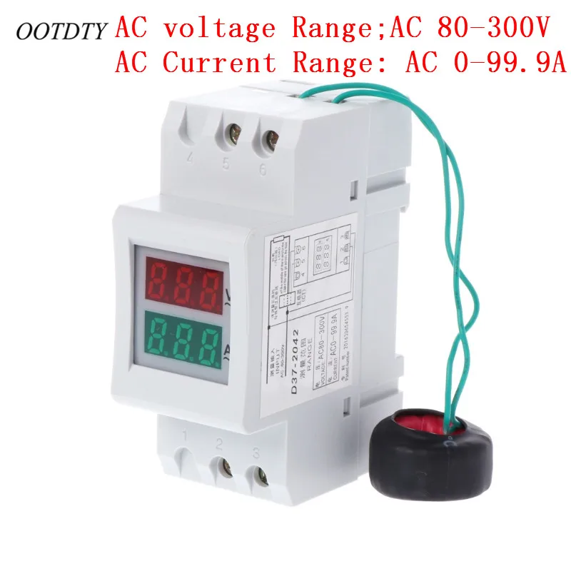 OOTDTY 2P 36 мм din-рейка двойной светодиодный измеритель напряжения Вольтметр Амперметр AC 80-300V 250-450V 0-100A