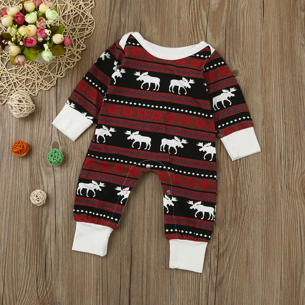 Toddler Baby Boy Girl Christmas Long Sleeve Deer Print Romper Clothes