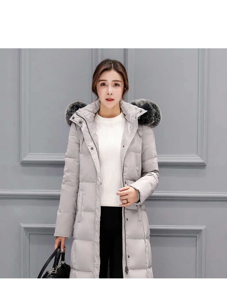 Новинка 2017, стеганая женская зимняя куртка, пуховое хлопковое пальто, длинная парка с капюшоном и меховым воротником, высококачественное зимнее женское пальто YZ345