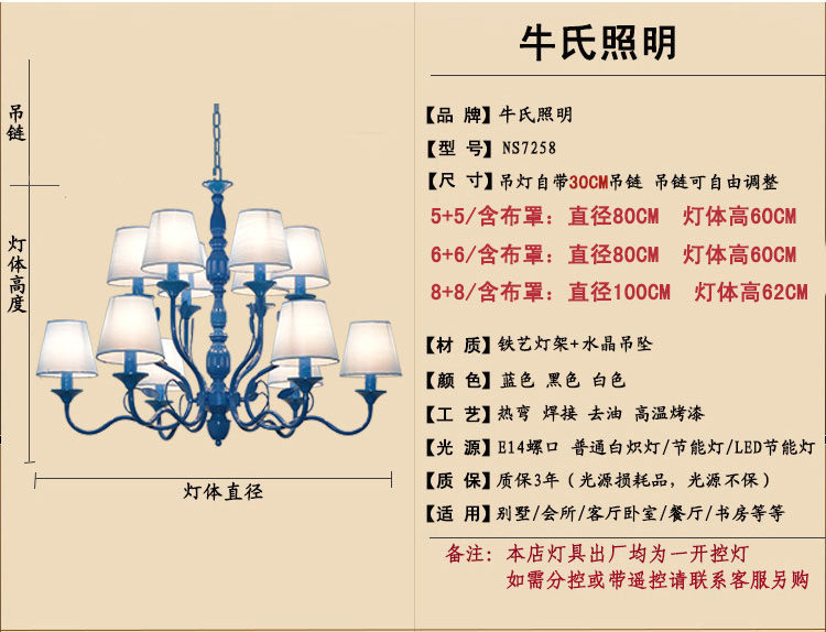 12(6+6) lights----Diameter 72 cm ,Height 60cm +chain 60cm (length requested,height adjustable)