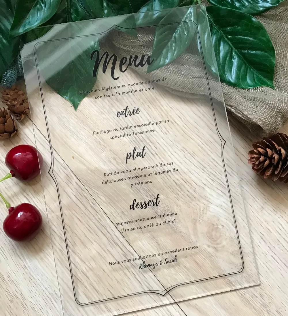 Бесплатная доставка 10 шт акриловые меню карты, пользовательские акриловые свадебные пригласительные карты, акриловые приглашения на день рождения