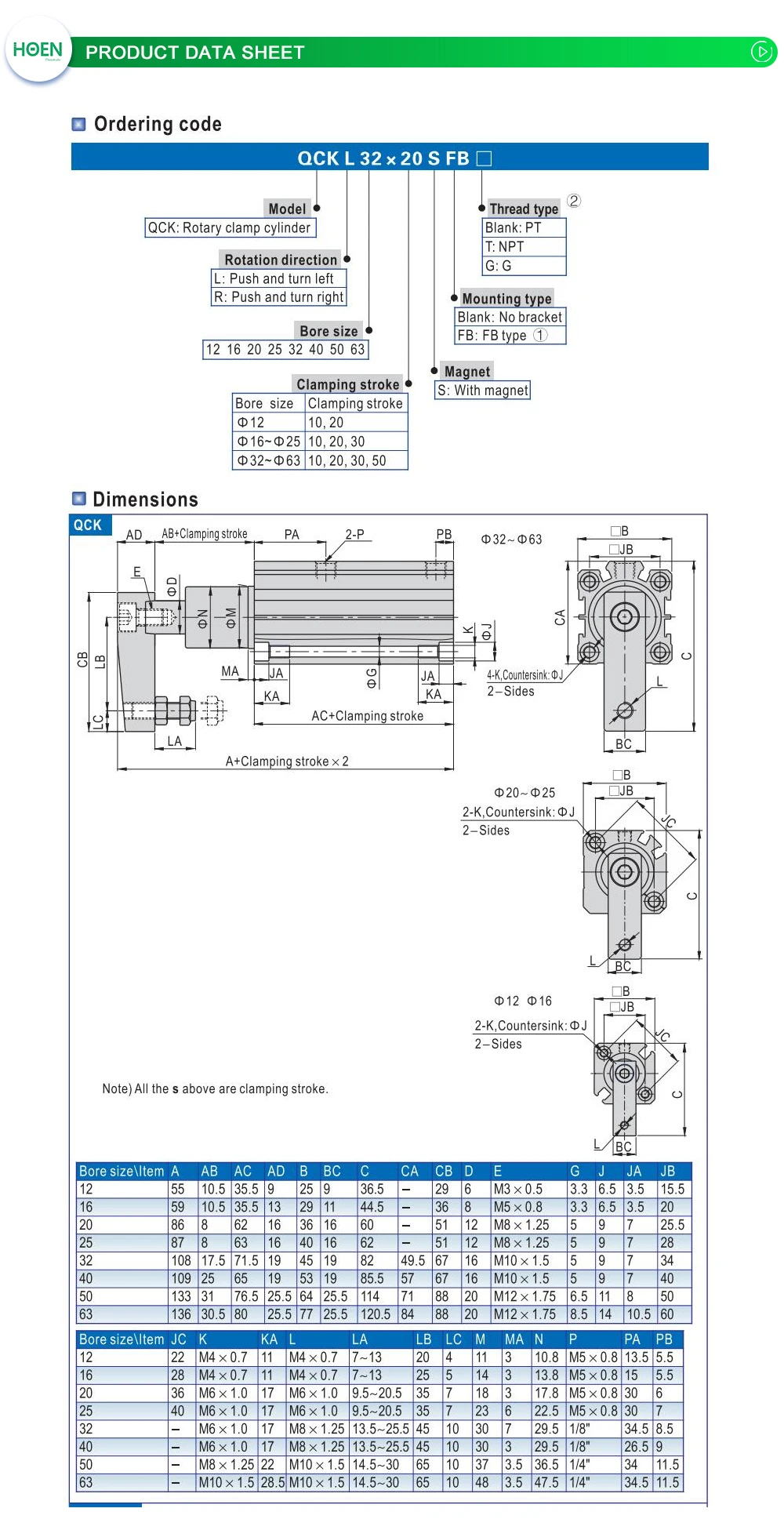 QCKL32-10 QCKR32-10 QCKL32-20 QCKR32-20 QCKL32-30 Airtac Тип двойного действия роторный зажим цилиндр серии QCK пневматический цилиндр