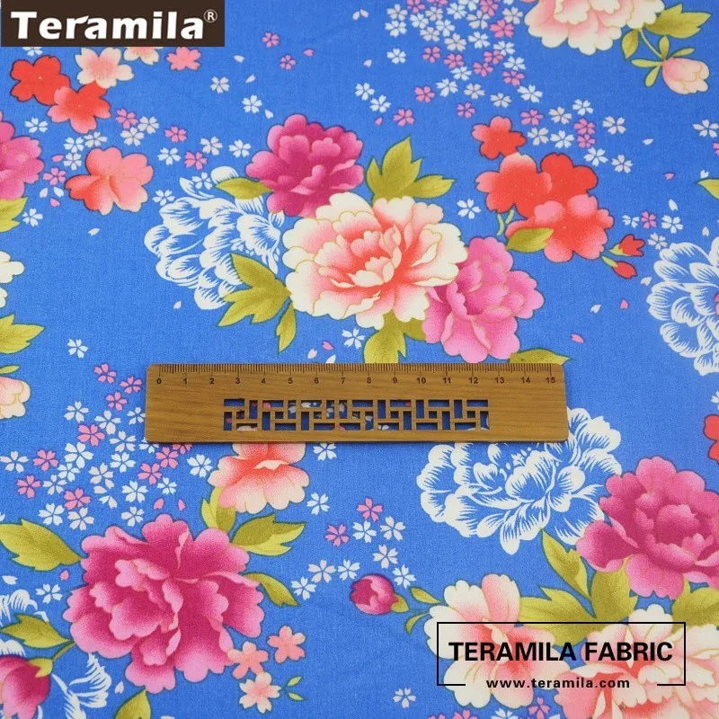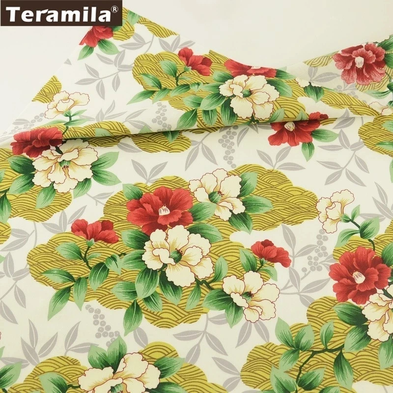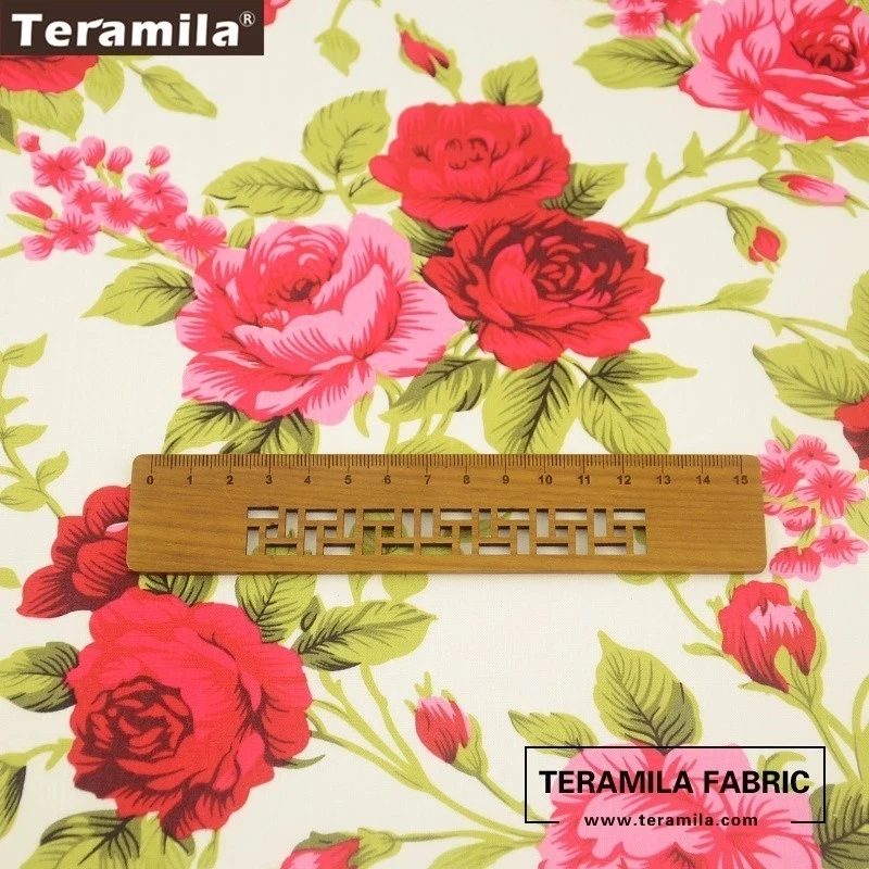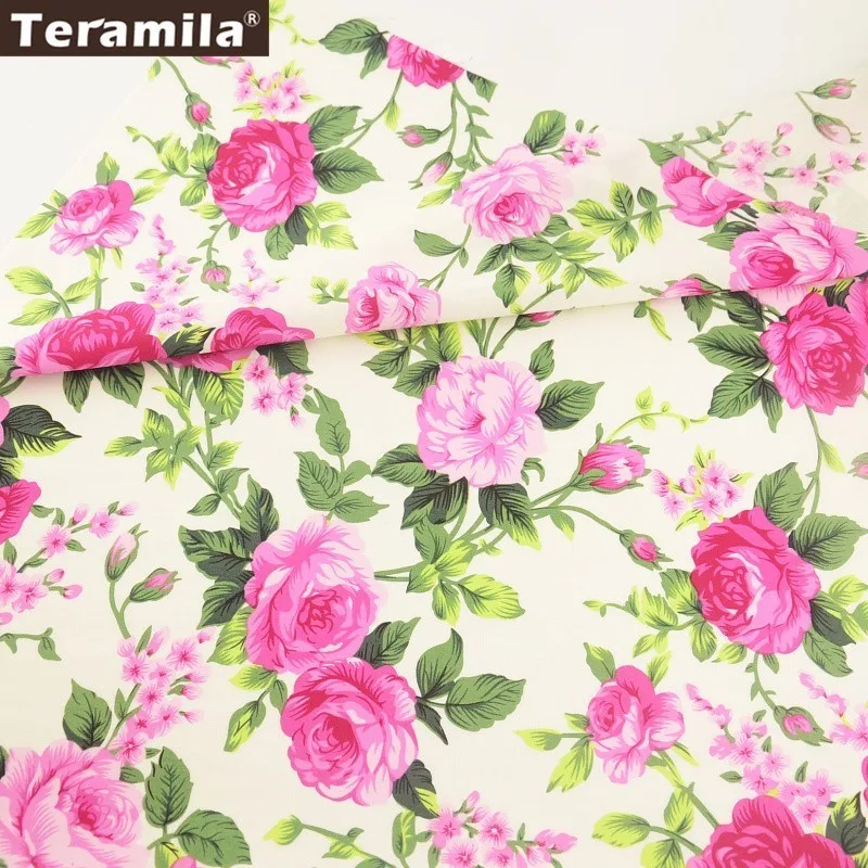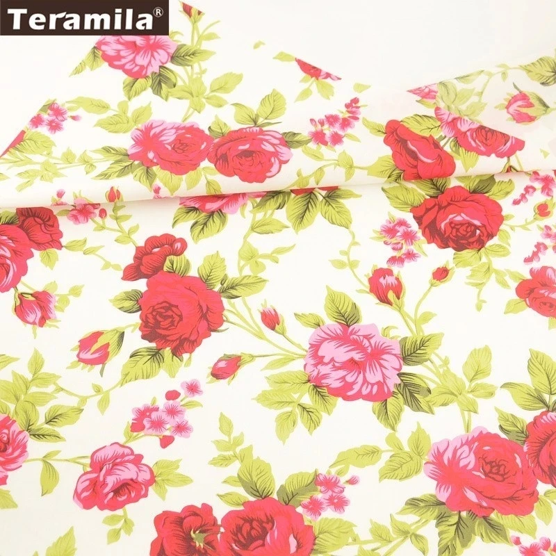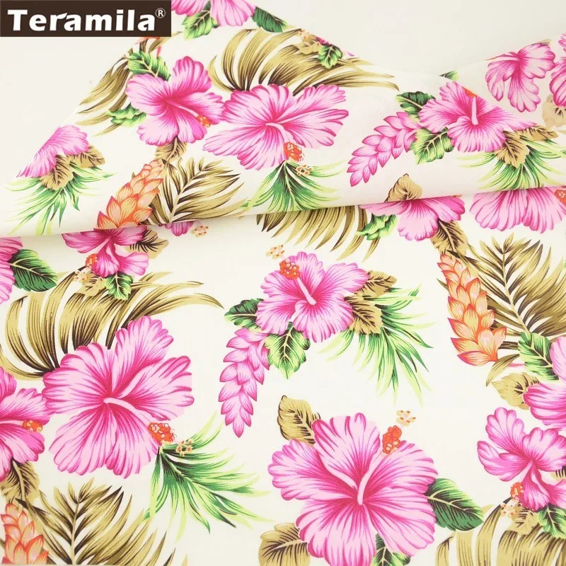 Teramila хлопок поплин белый лоскутное мягкое с цветочным принтом стиль ткани жира метр для шитья одежды платья