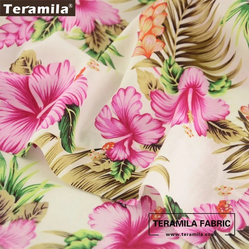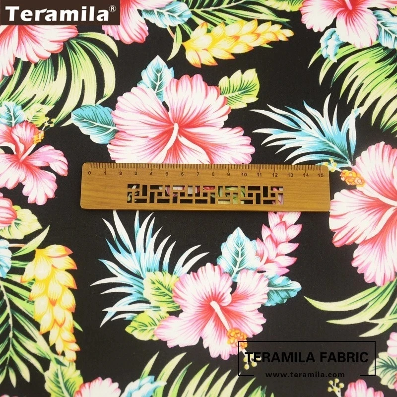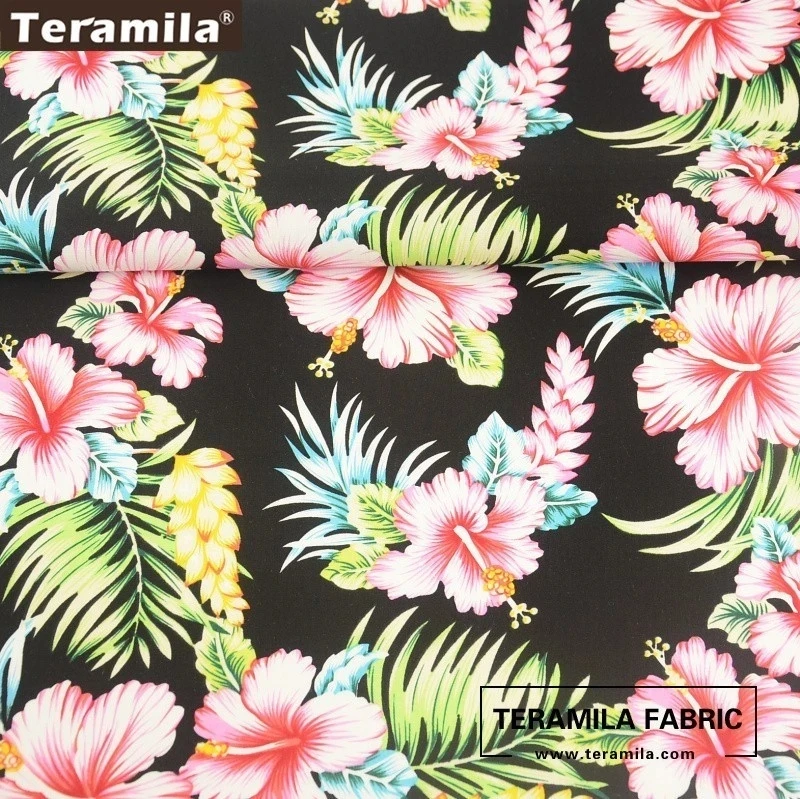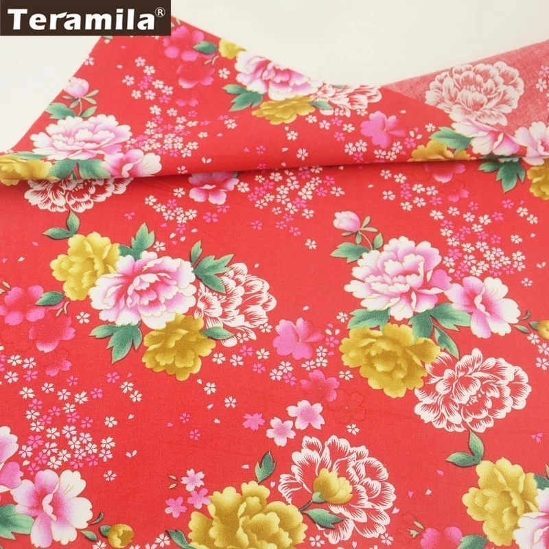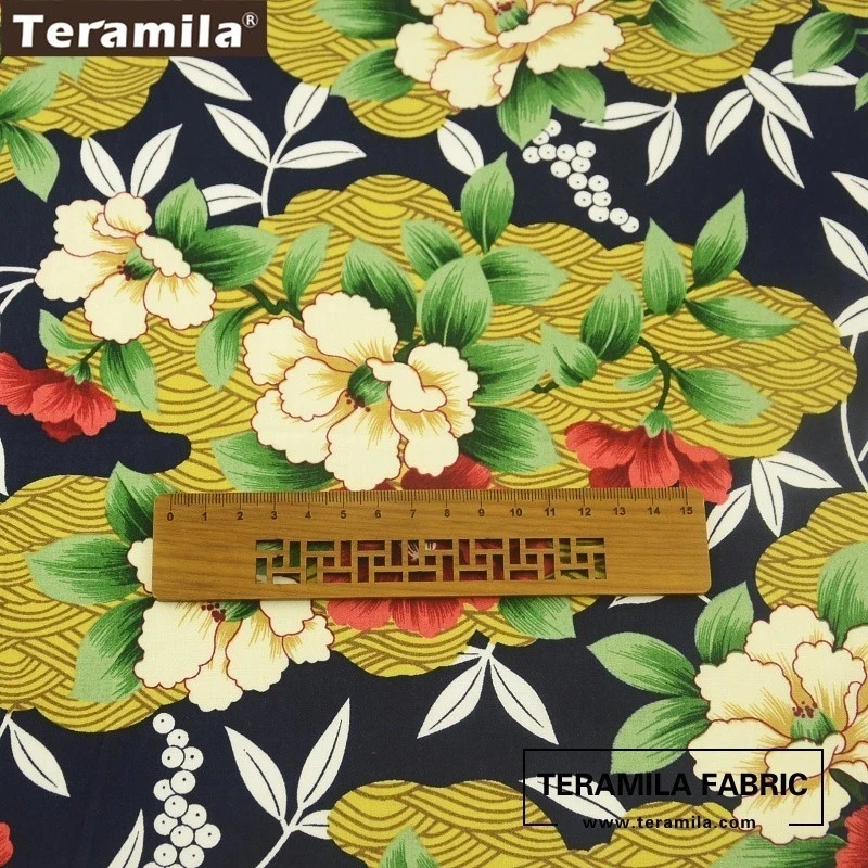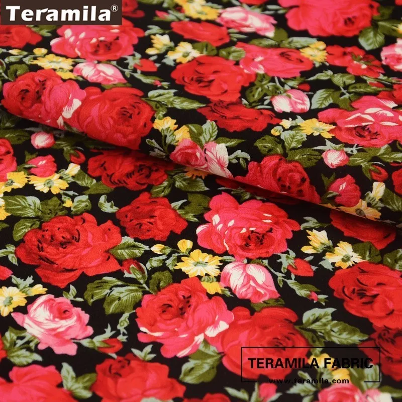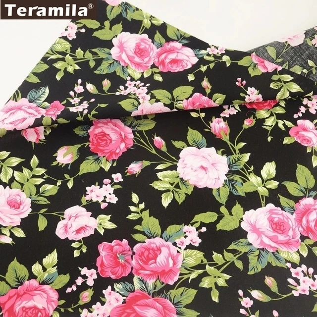 Teramila хлопок поплин белый лоскутное мягкое с цветочным принтом стиль ткани жира метр для шитья одежды платья