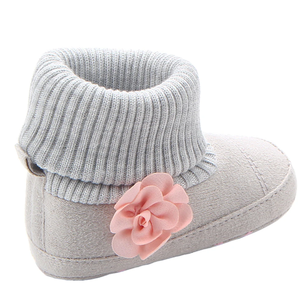 Сапоги для маленьких девочек, носки для новорожденных, носки с розовыми цветами, новый стиль, обувь для малышей, теплые зимние пинетки, Прямая поставка