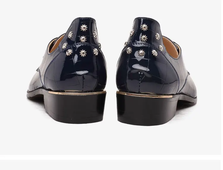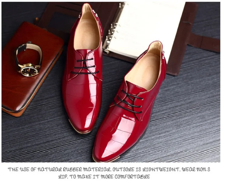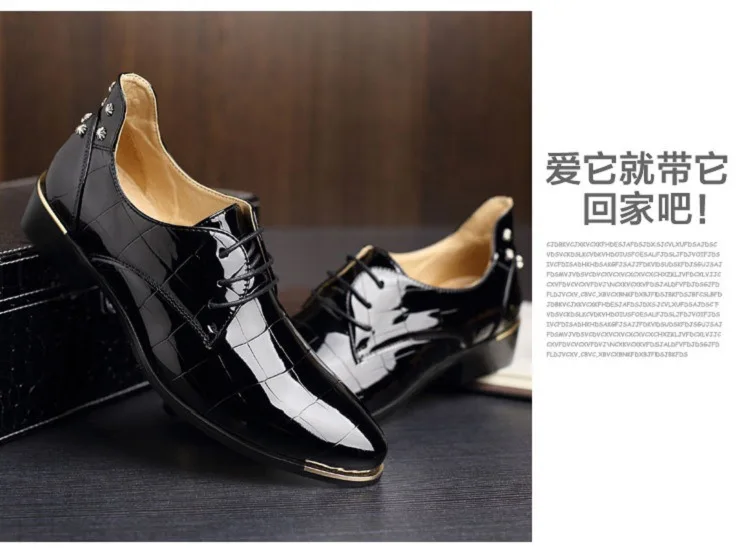 Модные мужские туфли с заклепками модельные туфли в деловом стиле дышащие лакированные кожаные туфли Новое поступление 2018 года; Оксфорды с острым носком; Большие размеры 45-4
