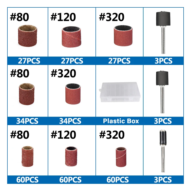 Набор шлифовальных барабанов XCAN 338 шт. #60 #120 #320 шлифовальная лента с 3/8 1/4 1/2 резиновой оправки для электрической мельницы Dremel вращающиеся инструменты