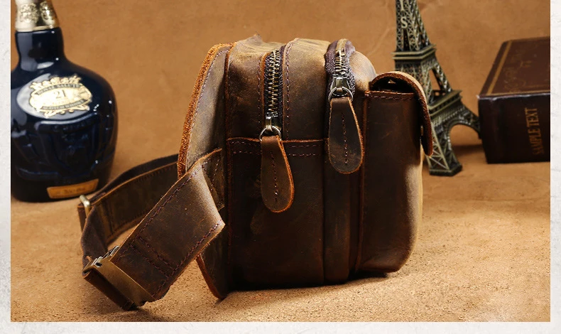 Материал: 100% натуральная кожа Особенность: кожа Crazy Horse Размер: 23,5 см * 10 см * 14 см Цвет: темно-коричневый/светло-коричневый Стиль: винтажная мода