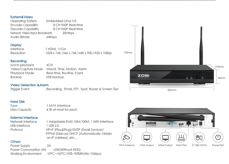 ZOSI 8CH CCTV системы беспроводной 960P NVR безопасности камера системы 1.3MP ИК Открытый P2P Wi-Fi ip-камера наблюдения комплект