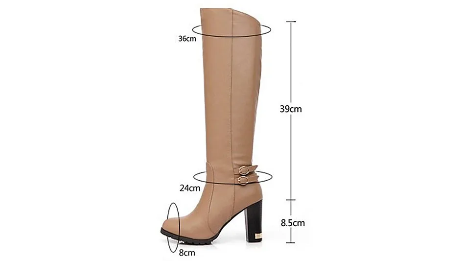 Женские сапоги высокие сапоги зимние сапоги из искусственной кожи женские сапоги до колена на резиновой подошве и высоком каблуке 8 см; Большие размеры