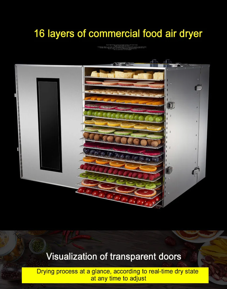 16 Слои коммерческих Сухофрукты машина 220 V Нержавеющая сталь фрукты и овощи обезвоживания автомат для сушки продуктов
