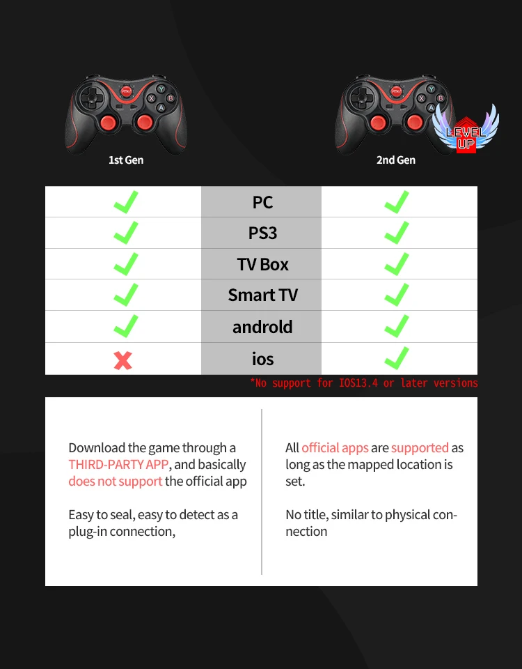 О: Да, но не поддерживает IOS13.4 или более позднюю версию. Если ваша версия телефона 13,4, вам нужно понизить вашу систему, чтобы использовать контроллер второго поколения!