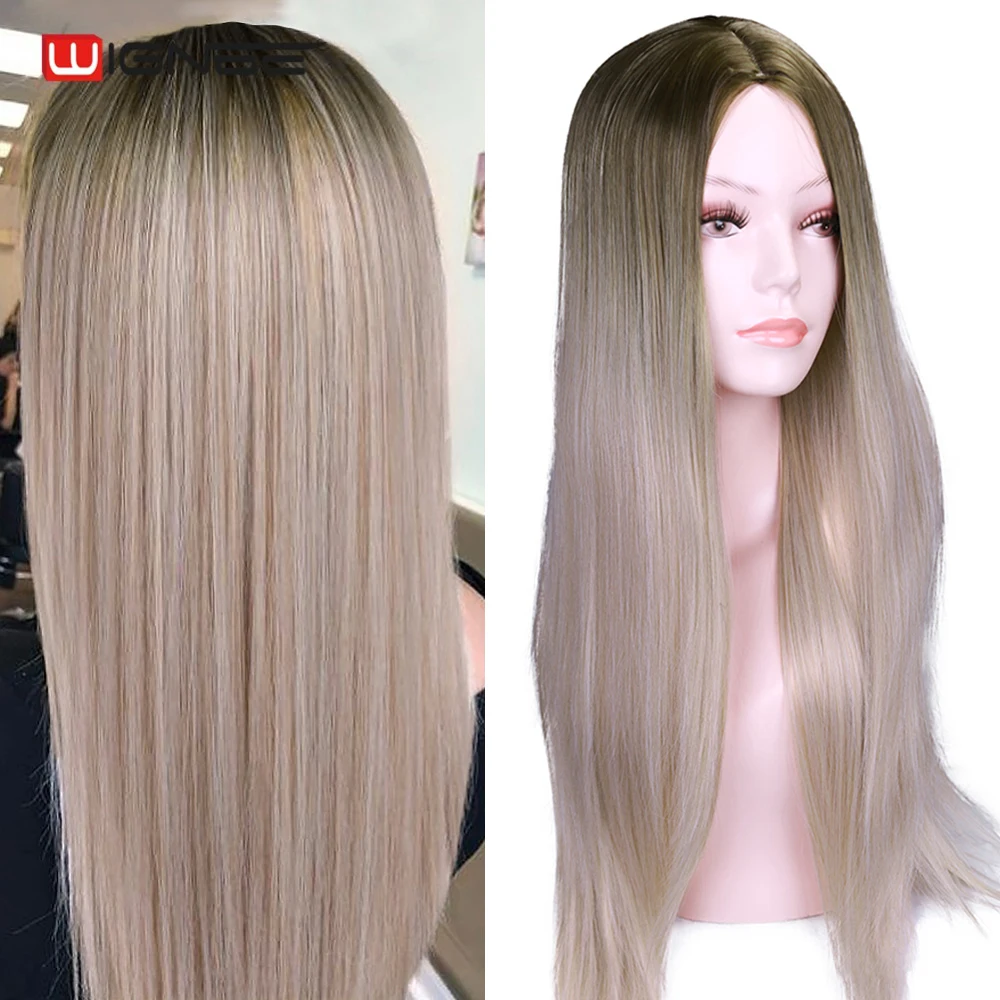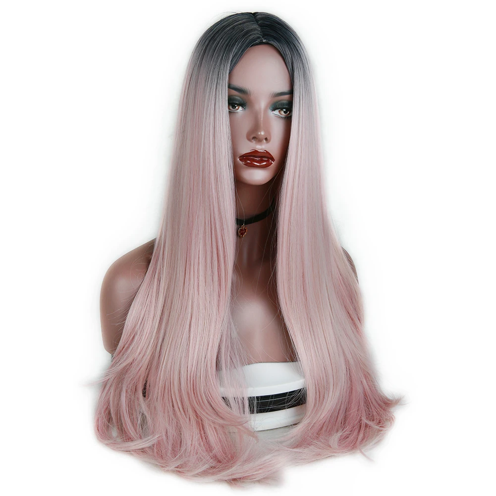 Wignee длинные прямые волосы Омбре светло-розовый высокая плотность температуры Синтетический парик для черно-белых женщин косплей волос женские парики