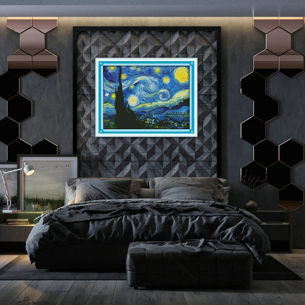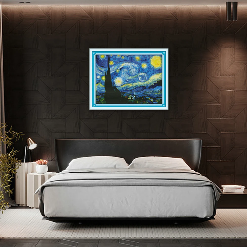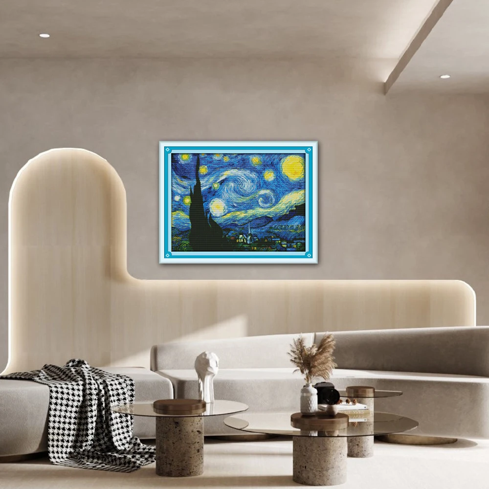 Joy Sunday Звездная ночь домашний декор F429 14CT 11CT Счетный и штампованный Звездная ночь Ван Гога крестиком наборы