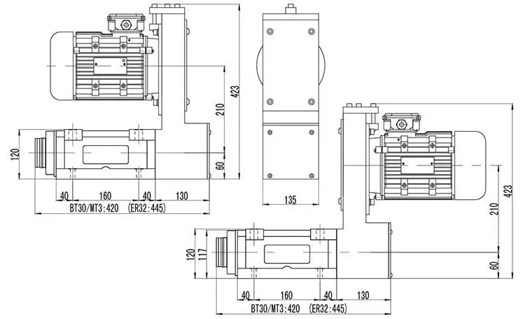MT3 BT30 ER32 силовая головка V-Belt Шпиндельный блок 2500 об/мин 6000 об/мин с 1,5 кВт 2HP индукционный двигатель CNC фрезерный сверлильный станок для резки