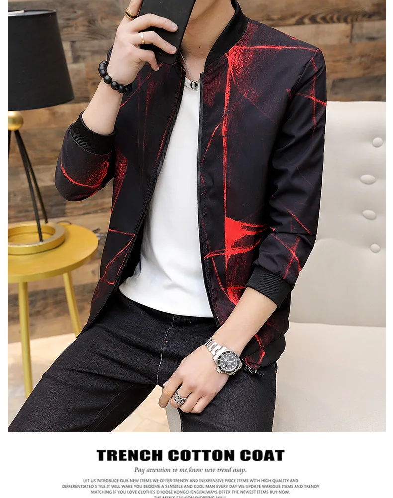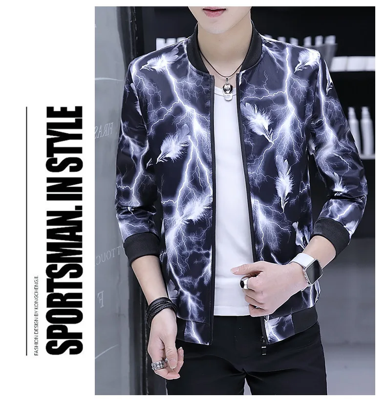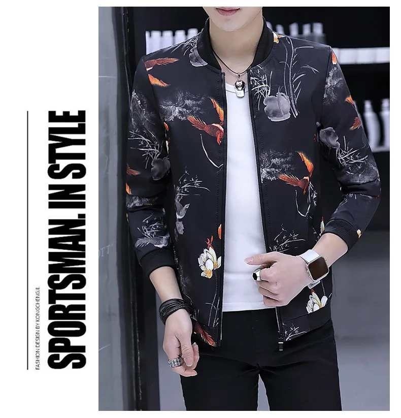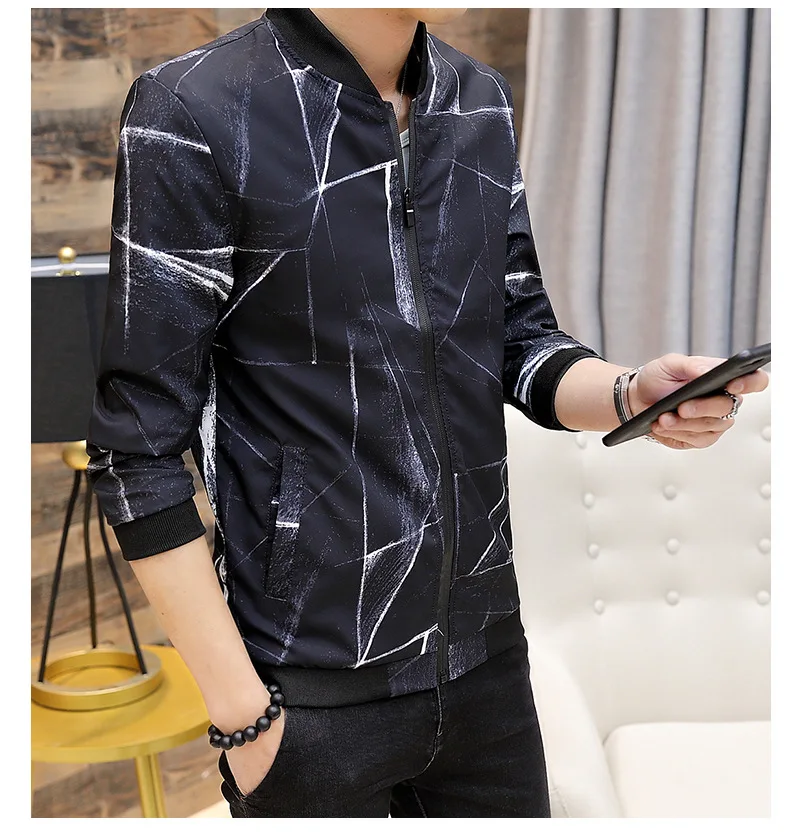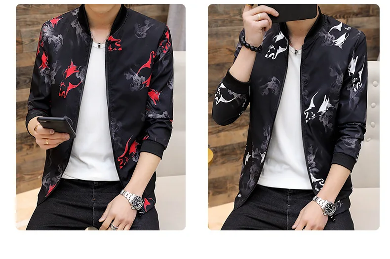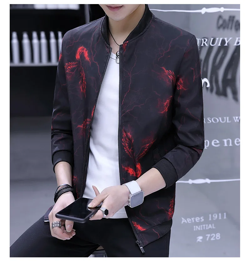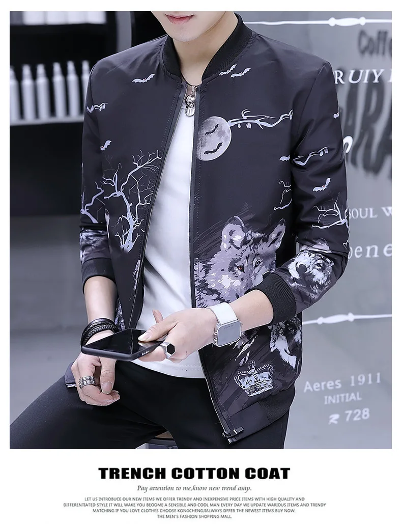 Мужские куртки, пальто, мужская повседневная приталенная куртка-бомбер с воротником-стойкой и принтом, мужское пальто, Новое поступление, весенне-осенние мужские пальто, верхняя одежда