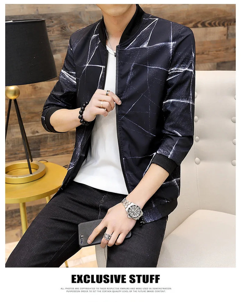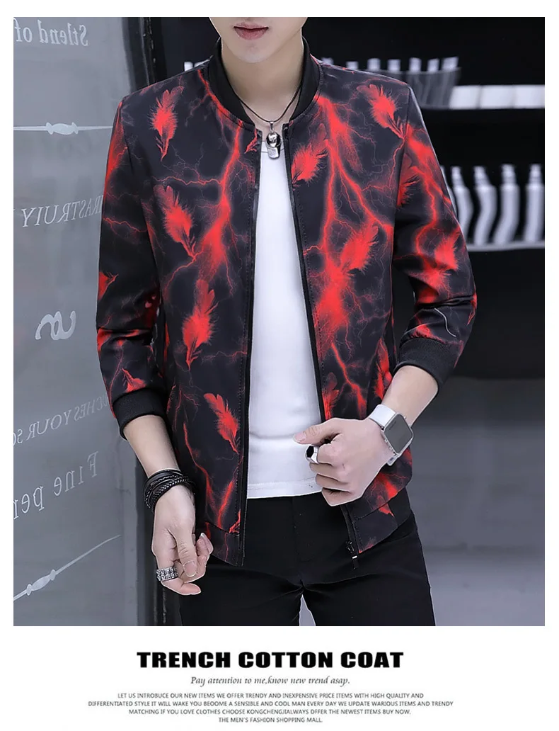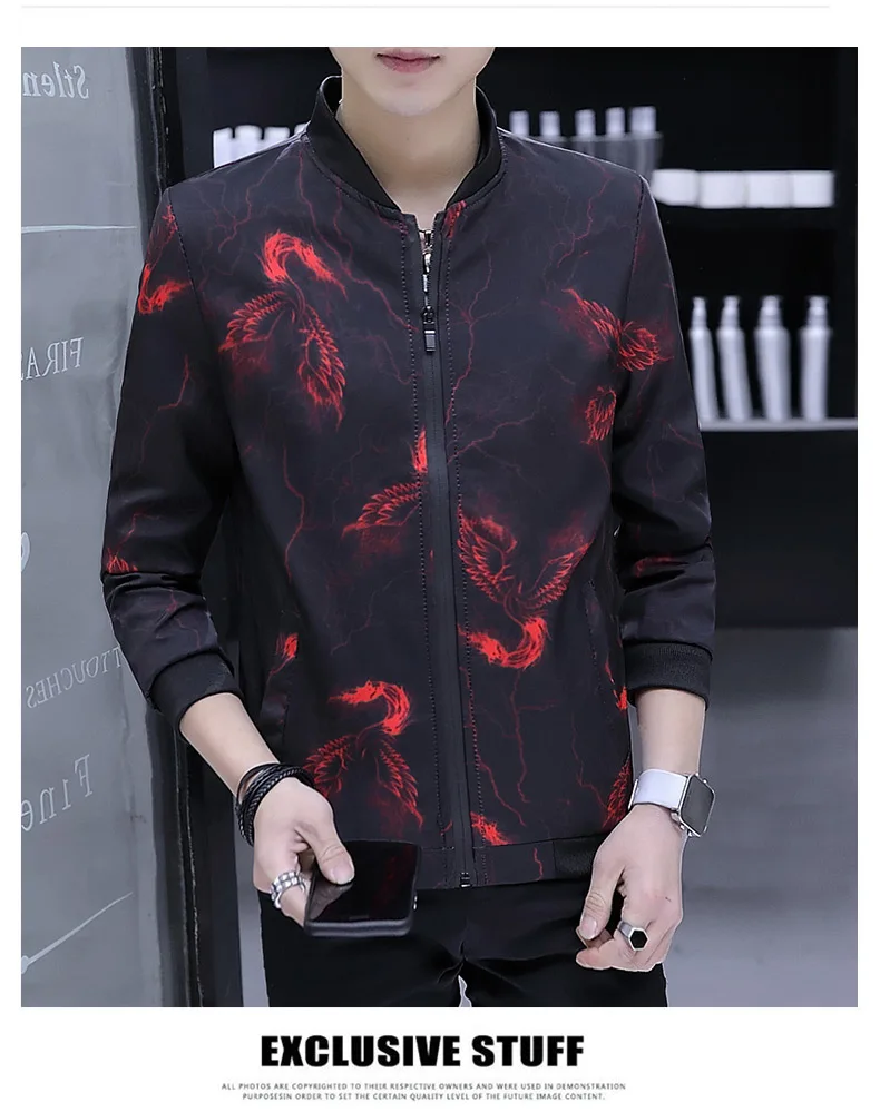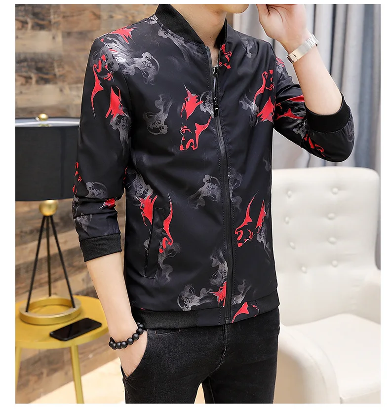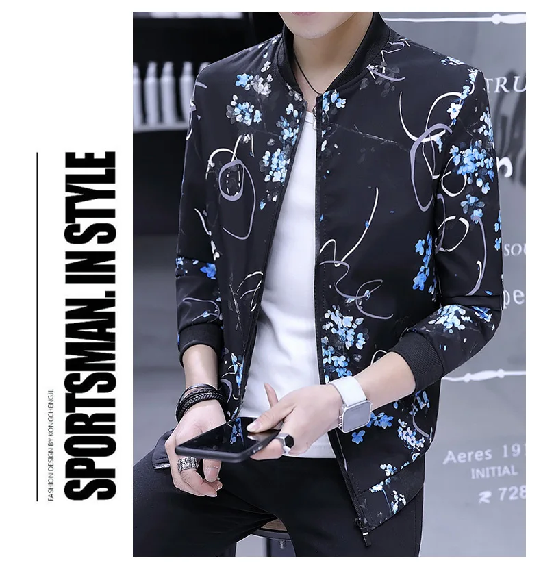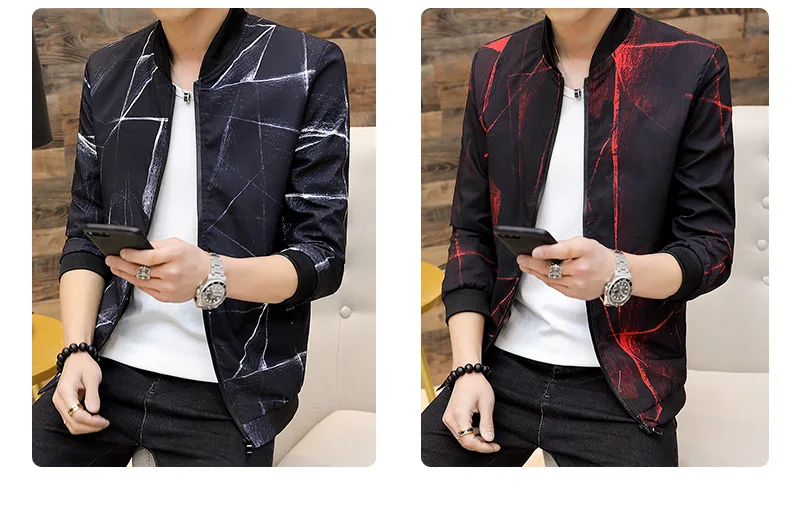 Мужские куртки, пальто, мужская повседневная приталенная куртка-бомбер с воротником-стойкой и принтом, мужское пальто, Новое поступление, весенне-осенние мужские пальто, верхняя одежда
