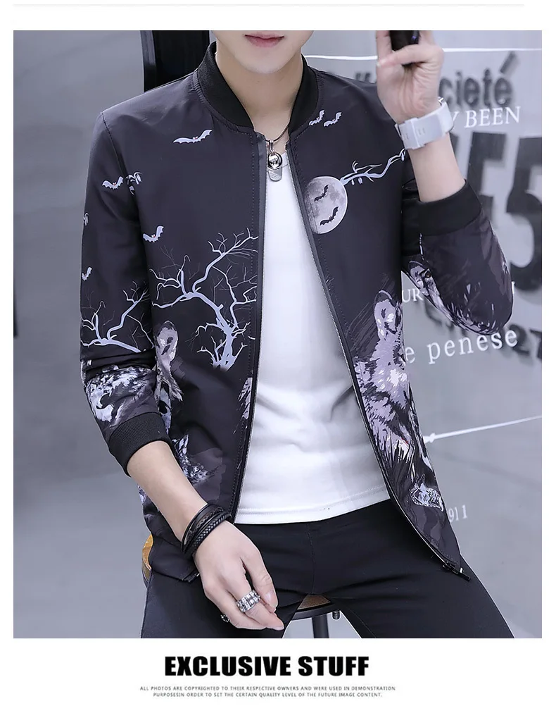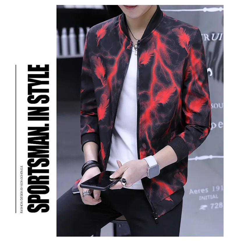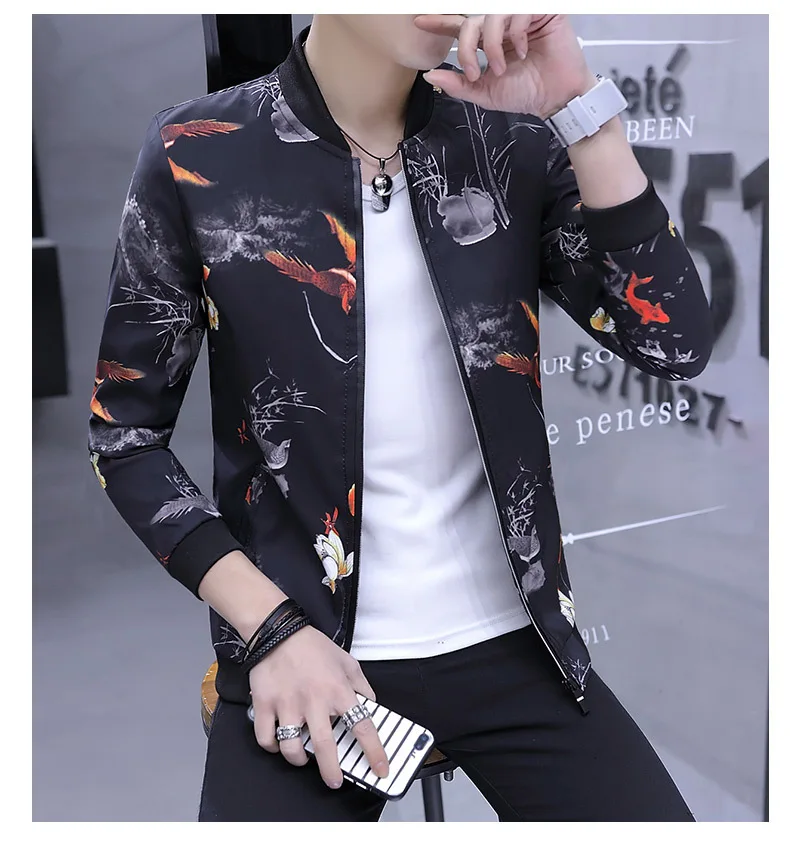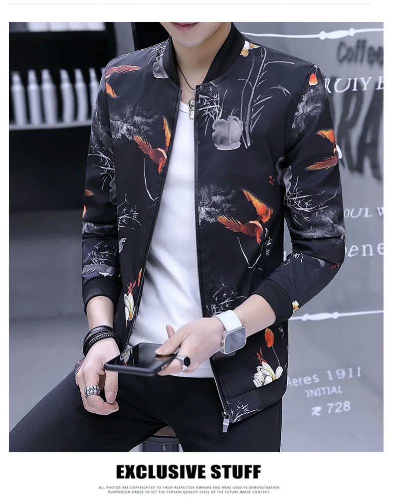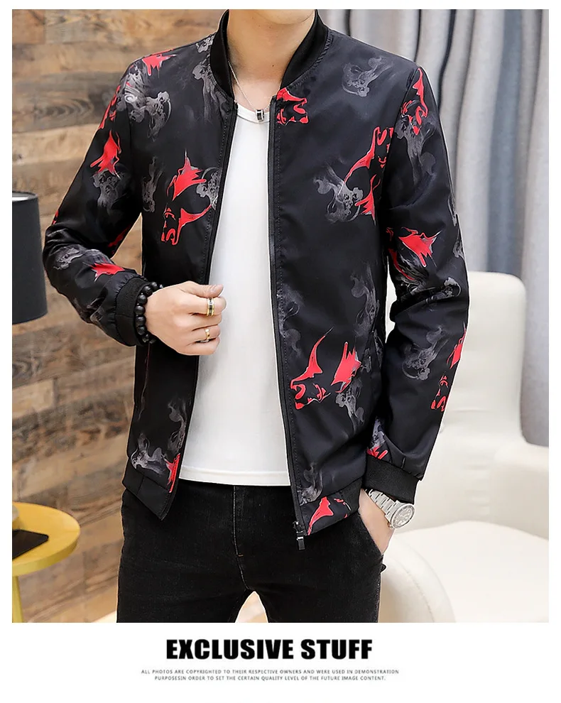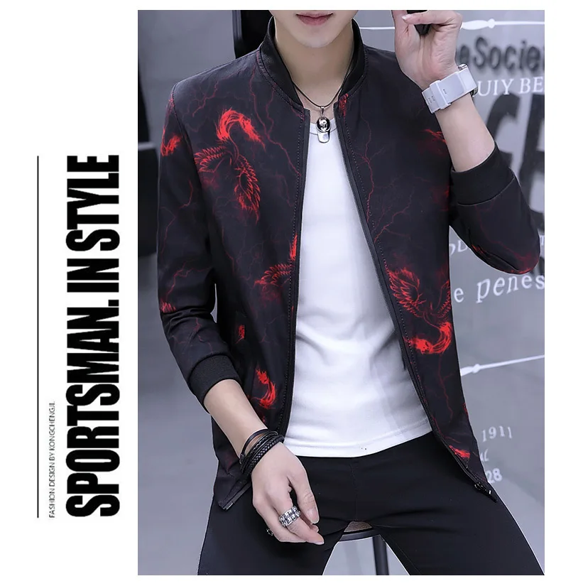 Мужские куртки, пальто, мужская повседневная приталенная куртка-бомбер с воротником-стойкой и принтом, мужское пальто, Новое поступление, весенне-осенние мужские пальто, верхняя одежда