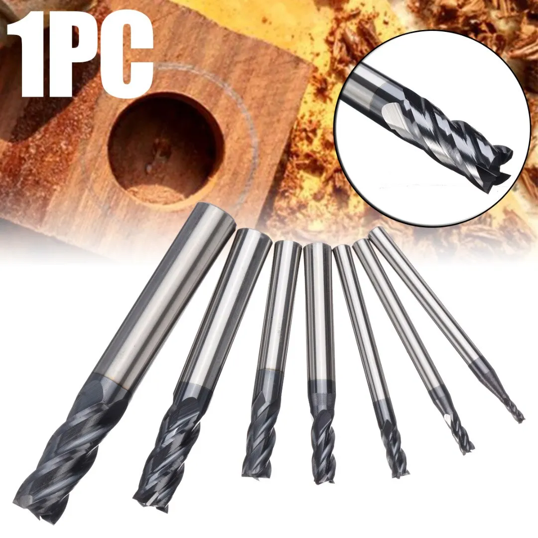 1 шт. 2/3/4/5/6/8 мм карбида вольфрама с покрытием Алюминий дерева измельчители 4 флейты цилиндрическим Хвостовиком Концевая фреза для станка с ЧПУ для резки древесины резки металла ИнструментUS $2,24-35,57