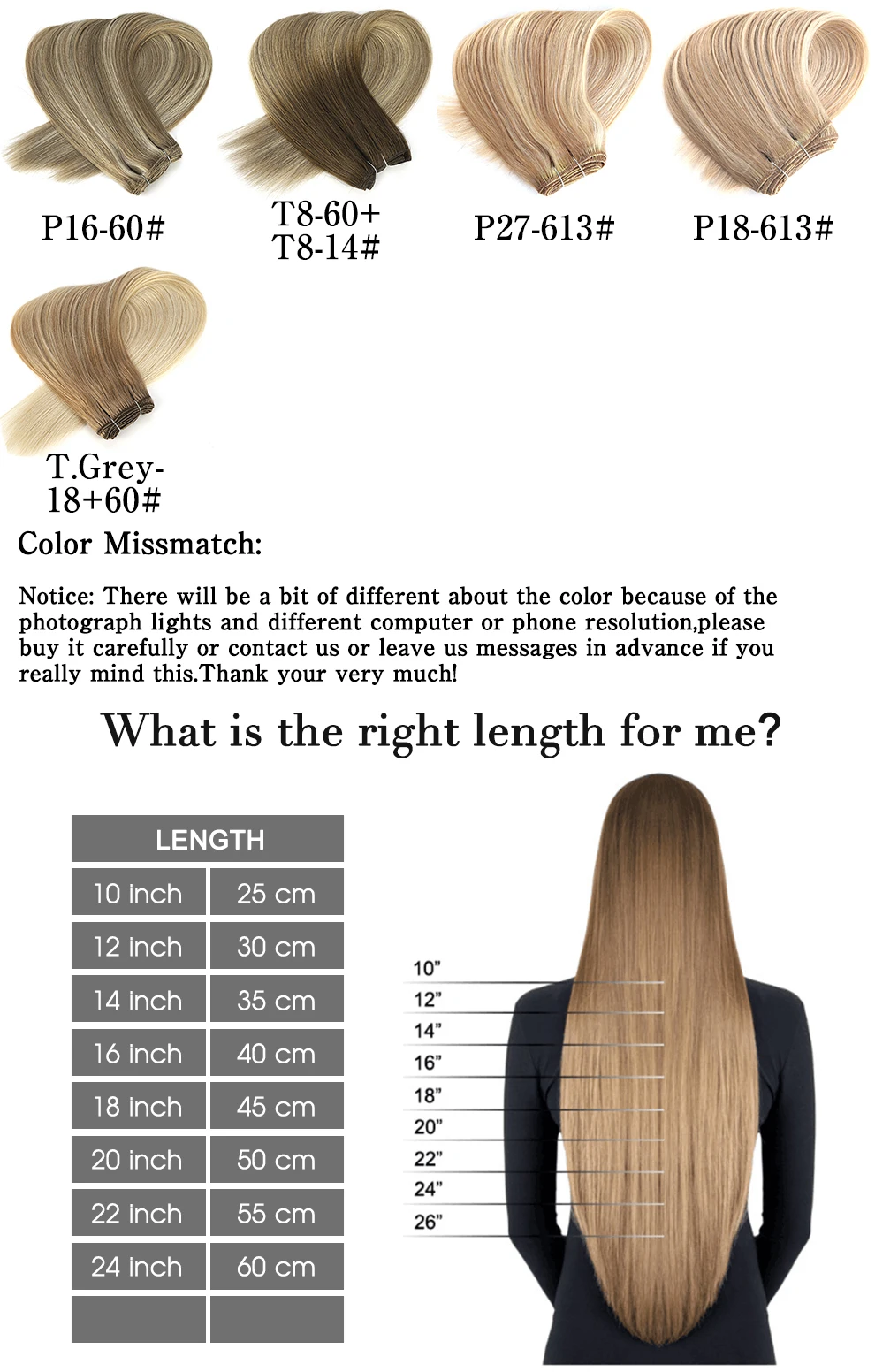 Тип изделия: Реми двойные вьющиеся волосы Качество: 100% настоящие натуральные человеческие волосы, без другого смешивания Текстура: прямые волосы Вес: около 100 грамм/шт Длина: 12 "30 см, 14" 35 см, 16 "40 см, 24" 60 см, 26 "65 см Доступные цвета: 1 # , 1B # , 2 # , 3 #, 4 #, 6 #, 60 #, P27/613 #, P18/613 # Характеристика Кутикула Remy волосы двойной нарисованный Одинаковая длина и вся кутикула в одном направлении Один год использования Не линяет, не запутывается Применение предложение Обычно для полной головы требуется 3-4 штуки Время отправки и время доставки Отправка заказа в течение 24 часов, кроме праздников Доставка через FedEx или DHL может занять 3-5 рабочих дней Доставка через ePacket может занять 15-30 рабочих дней Доставка авиапочтой Китая занимает 30-60 рабочих дней