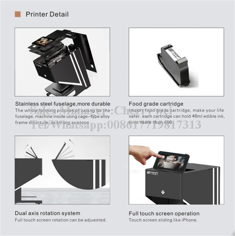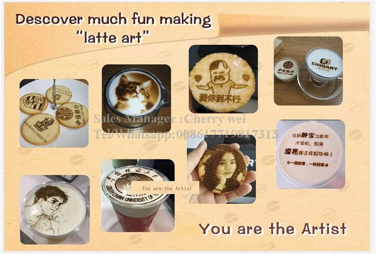 Этот кофейный принтер представляет собой комбинацию 3D печати и струйной технологии кофе Цветочная машина. Пользователям нужно только положить кофе на цветочную машину, а затем через мобильный телефон, чтобы загрузить любой желаемый узор, подождите 20 секунд, вы можете получить чашку кофе с индивидуальным узором.