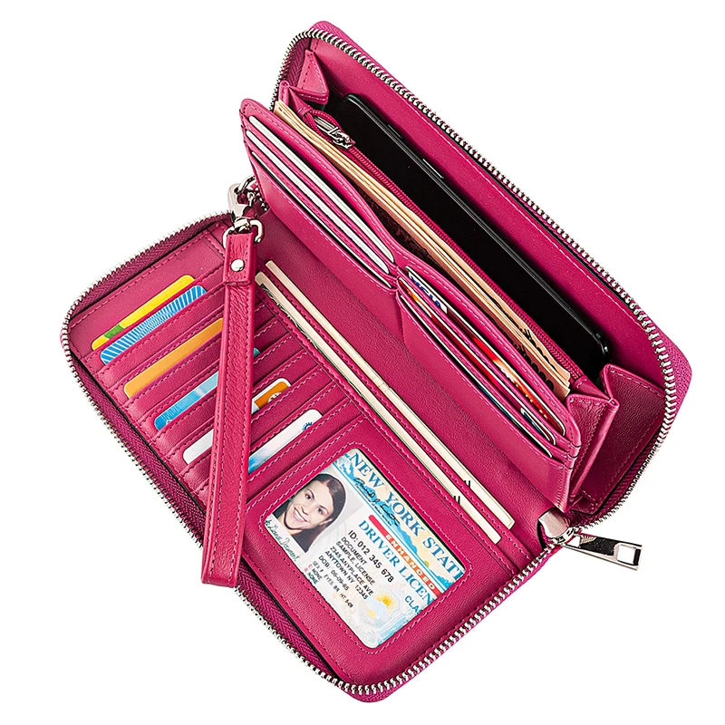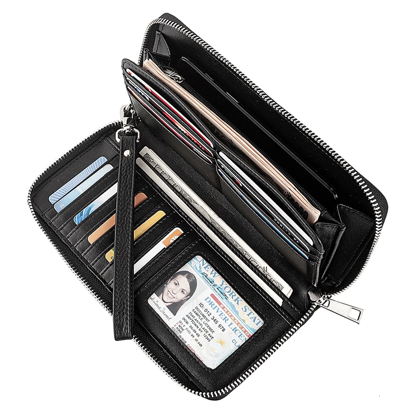 Функциональный Дизайн-16 отделений для кредитных карт, 1 отделение для удостоверения личности, 1 карман на молнии для мелочи, 4 кармана для денег, этот кошелек Подходит для наличных денег, монет, сотового телефона, например, для паспорта, чековая книжка, со съемным ремешком на запястье.