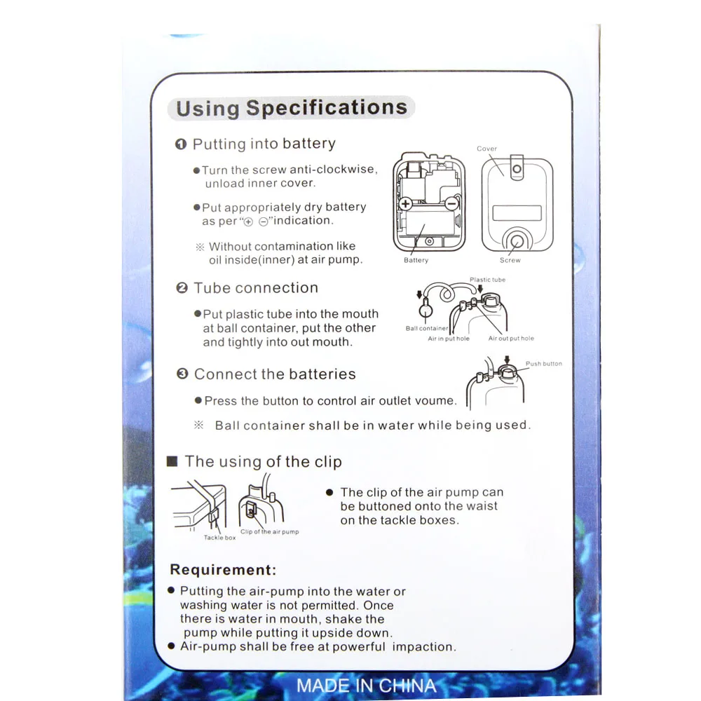Это водостойкий удобный воздушный насос. Идеальный инструмент для рыбалки!