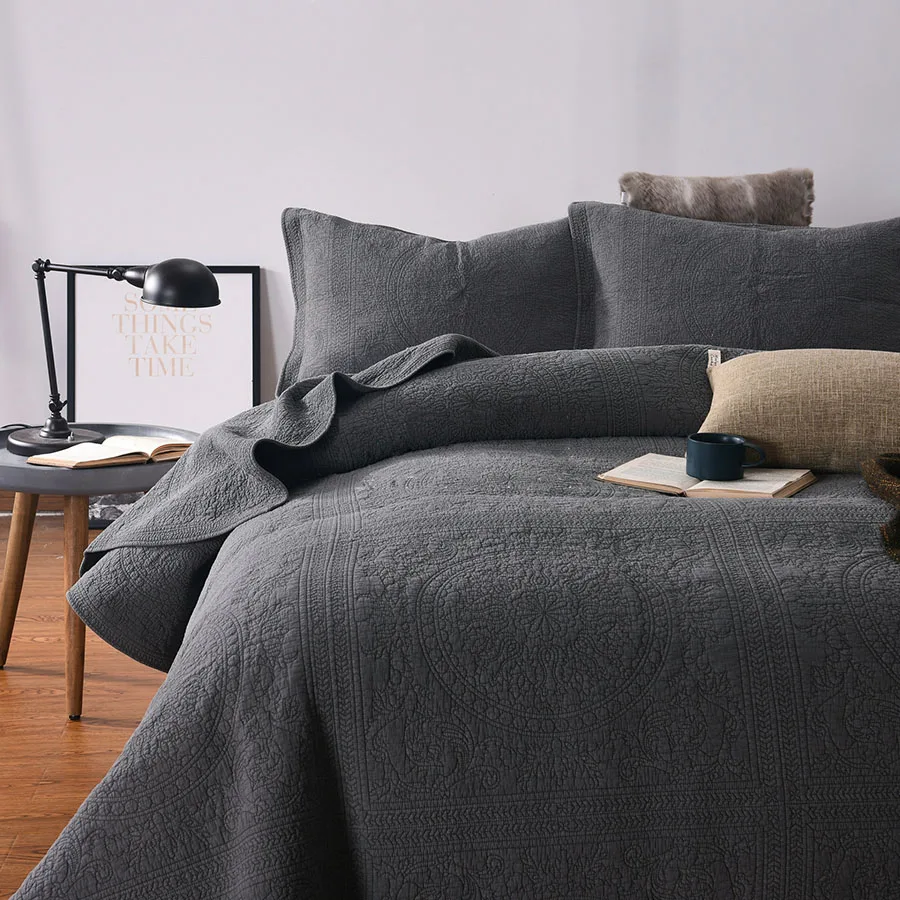 Качественное стеганое одеяло, комплект из 3 предметов, хлопковое стеганое покрывало с вышивкой, роскошное покрывало, постельное белье королевского размера для кровати