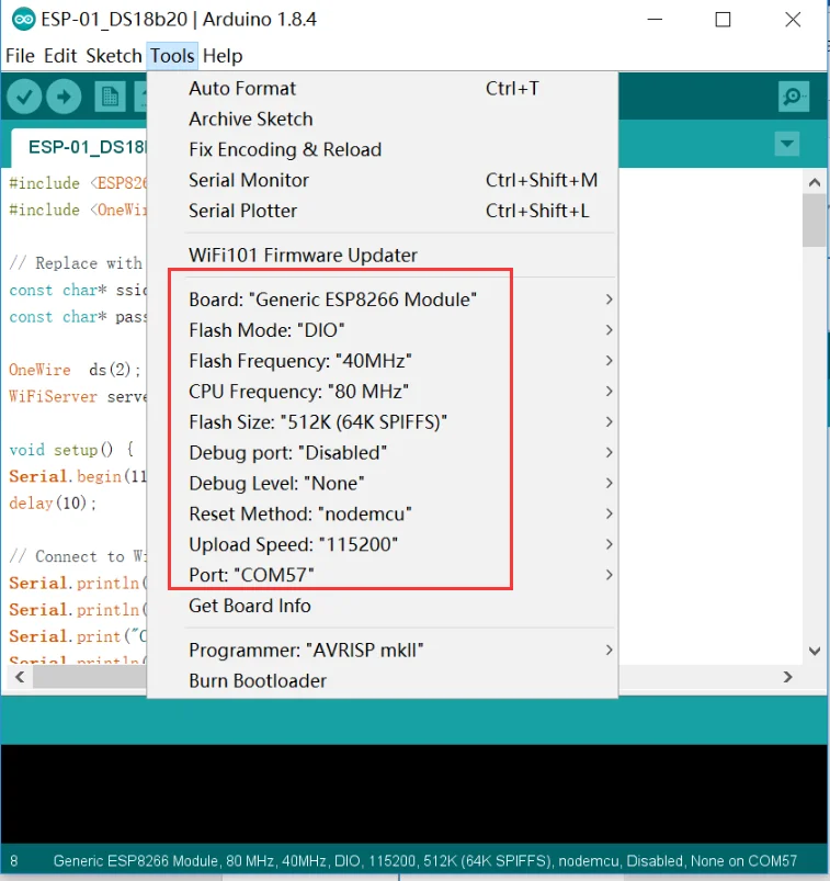 2. Загрузите программу для ESP-01S