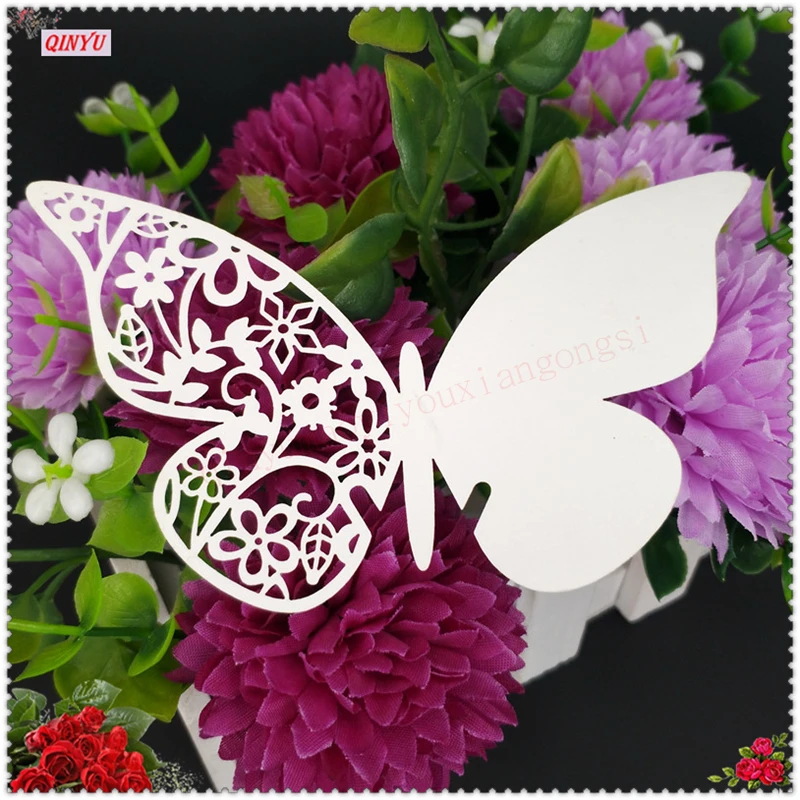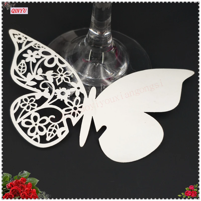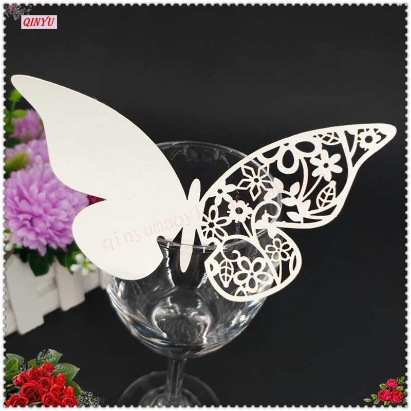 В форме бабочки эскорт стакан для Вина Бумажный полый лазерный разрез 50 шт. карты для свадебной вечеринки украшения дома 5ZSH847-50