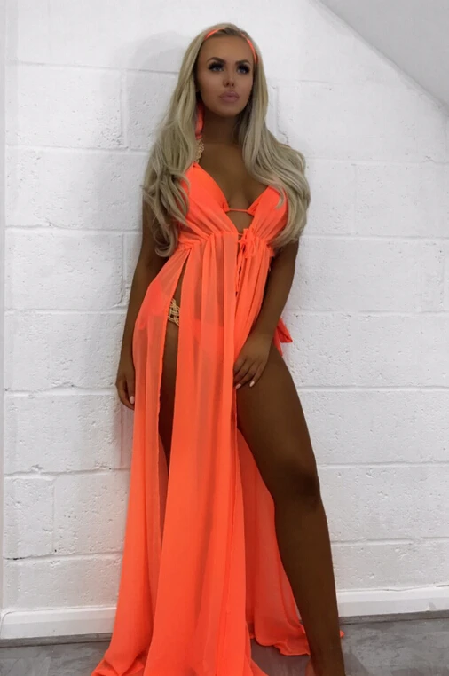 Женское пляжное платье-накидка, шифоновое длинное однотонное пляжное платье-кардиган, купальный костюм, накидка, 2019