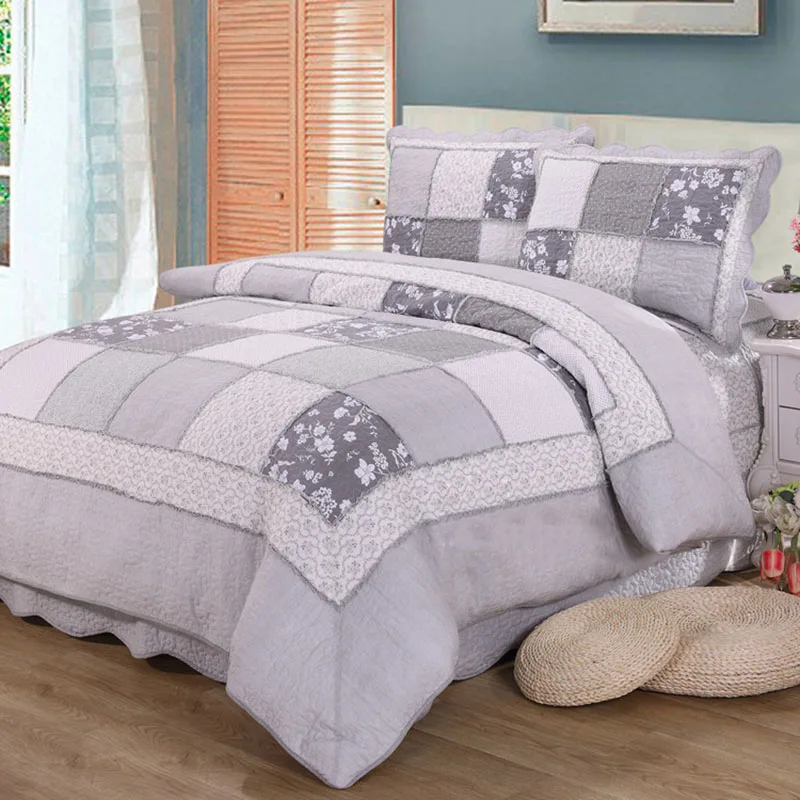 Подробности: Материал чехла: 100% хлопок (промытый хлопок) Наполнитель: высококачественный хлопок + полиэстер Количество комплекта: 3 шт. (в комплект входит одеяло x1 шт., наволочка x 2 шт.) 3,2 Устойчивость цвета: 4 уровня Размеры размер/Количество: Одеяло: 90*98 дюймов (230*250 см) Наволочка: 20*27 дюймов (50 см * 70 см) (Не включая наполнитель) Это 3 шт/4 шт., стеганый набор хлопковых материалов, легко моется. Высокотемпературный процесс сушки после стирки делает его действительно мягким и удобным, прочным, не скатывается.