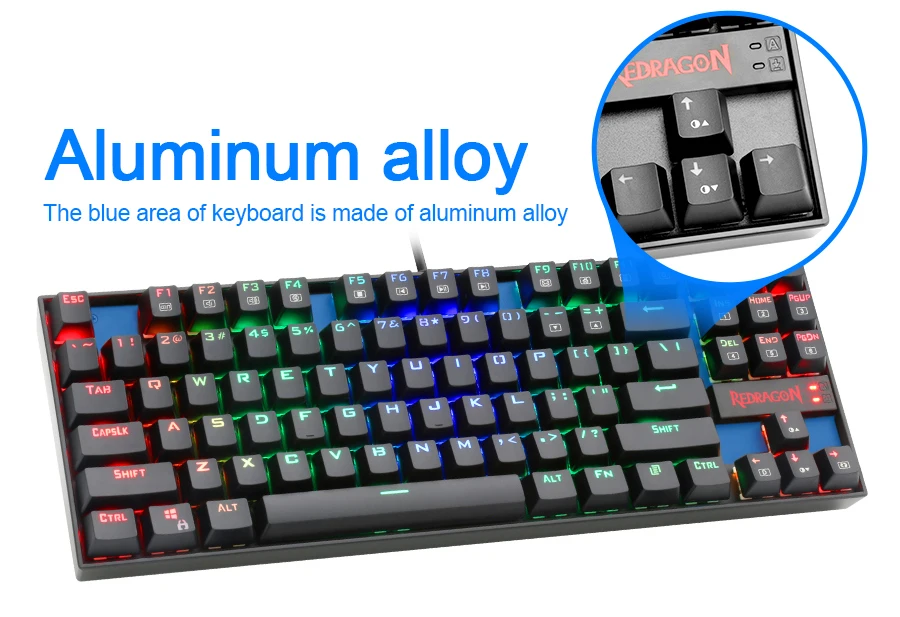 Механическая игровая клавиатура Redragon K552 с алюминиевым USB синим переключателем, эргономичные клавиши Rgb со светодиодной подсветкой, 87 клавиш для компьютера, ПК, геймера